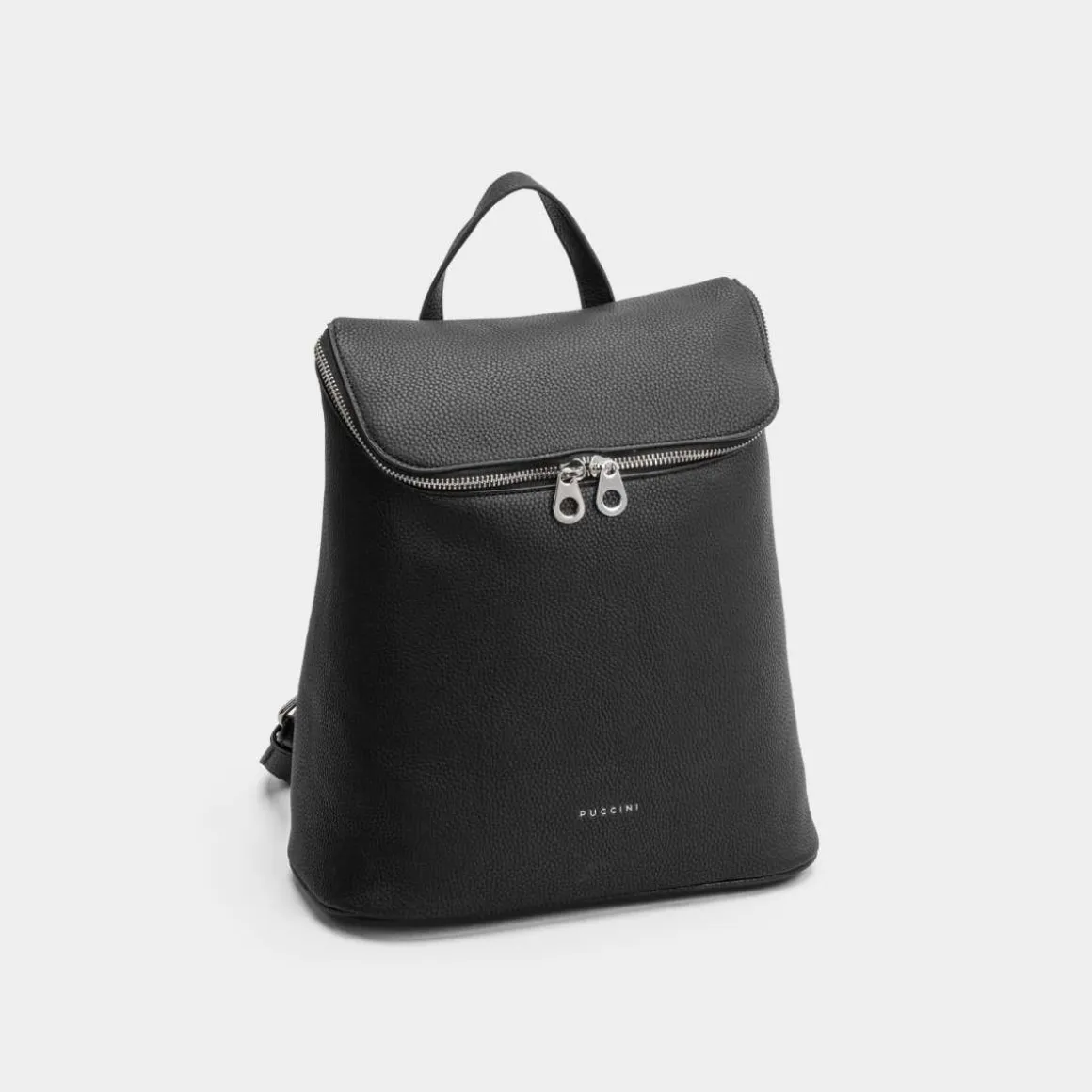 Stilig ryggsekk i smakfullt design, laget av eksklusivt imitert skinn i skinnlook fra Puccini. Posens hovedrom åpnes med lokkets glidelås. Pene, justerbare skulderstropper. Enkelt bærehåndtak.