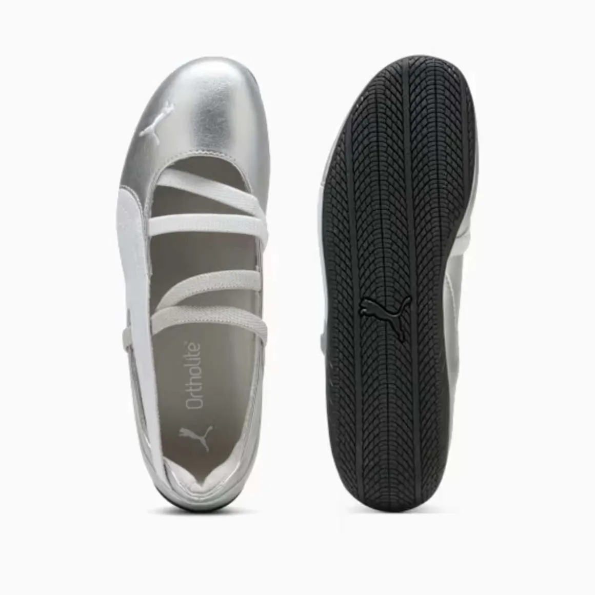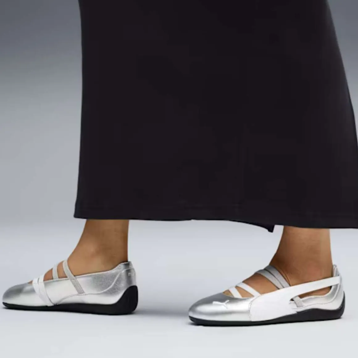 Ballerina fra PUMA. Gi nytt liv til klassikerne med Speedcat Ballet – en ny tolkning av PUMA Speedcat. Inspirert av klassiske ballerinasko forvandler Speedcat Ballet racingkulturens ikon med en elegant slip-on-konstruksjon. Med en unik utskåret Formstrip, elastiske stropper og en yttersåle med dekkmønster leverer Speedcat Ballet en uanstrengt stil som tar deg fra bane til by.