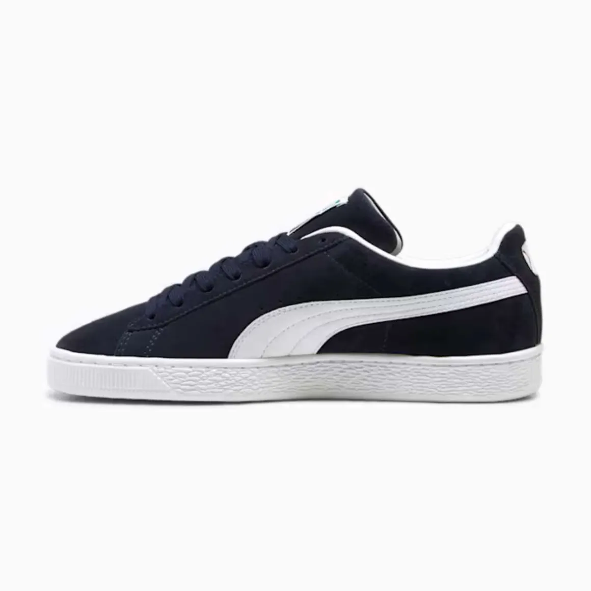Puma Suede Classic kom på markedet i 1968 og har siden den gang vært en banebryter. Suede fortsetter å vokse i popularitet, verdsatt av autentiske og uttrykksfulle personer som omfavner denne ikoniske skoen. Denne versjonen har en base i semsket skinn med en PUMA Formstrip i lær.
