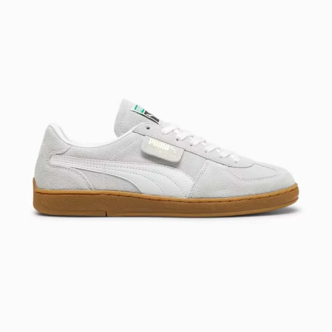 Super Team-sneakers fra PUMA ble først lansert i 1982. Nå, på 2020-tallet, bringer vi dem tilbake. Denne versjonen holder seg tro mot originalen med semsket skinn i overdelen og PUMA Formstrip i lær på siden.