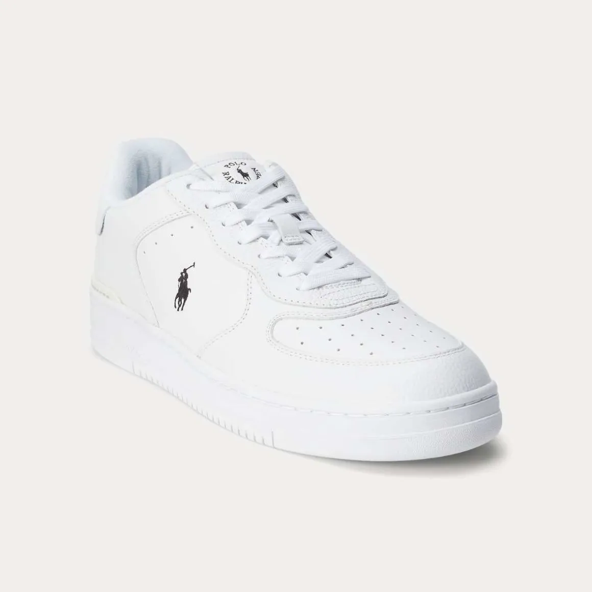 The Masters Court tar Ralph Lauren klassiske lave sneakers til nye høyder, med en elegant skinnklips på hælen, en EVA-mellomsåle, og en solid såle som gir både stil og komfort. Den eksklusive skinn-overdelen kombinerer streetwear-elementer som en perforert tåhette og ikoniske logodetaljer.