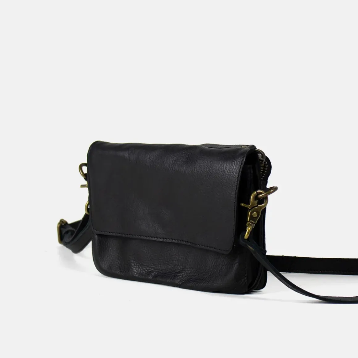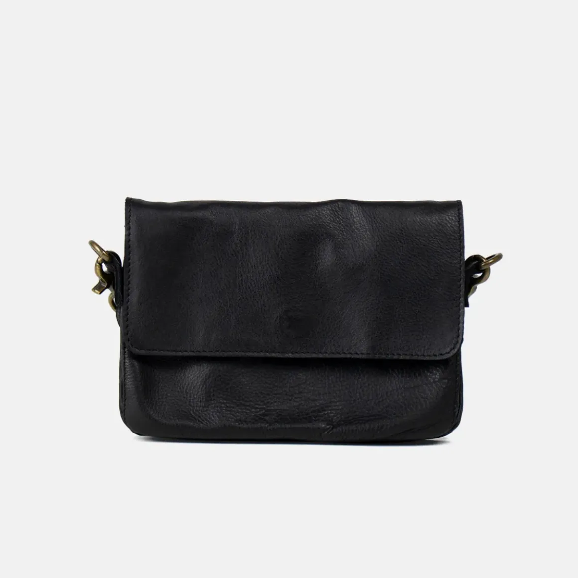 DIXIE Acile. Liten fold-over klaff crossbody med magnetisk trykklås. Denne vesken er komplett med to glidelåsrom med skinntrekk, inkludert en åpen lomme og tre kortglidere. Har en avtakbar og justerbar skulderrem slik at den kan brukes som en veske med glidelås øverst eller ta av stroppene for å bære den i hånden som en clutch.