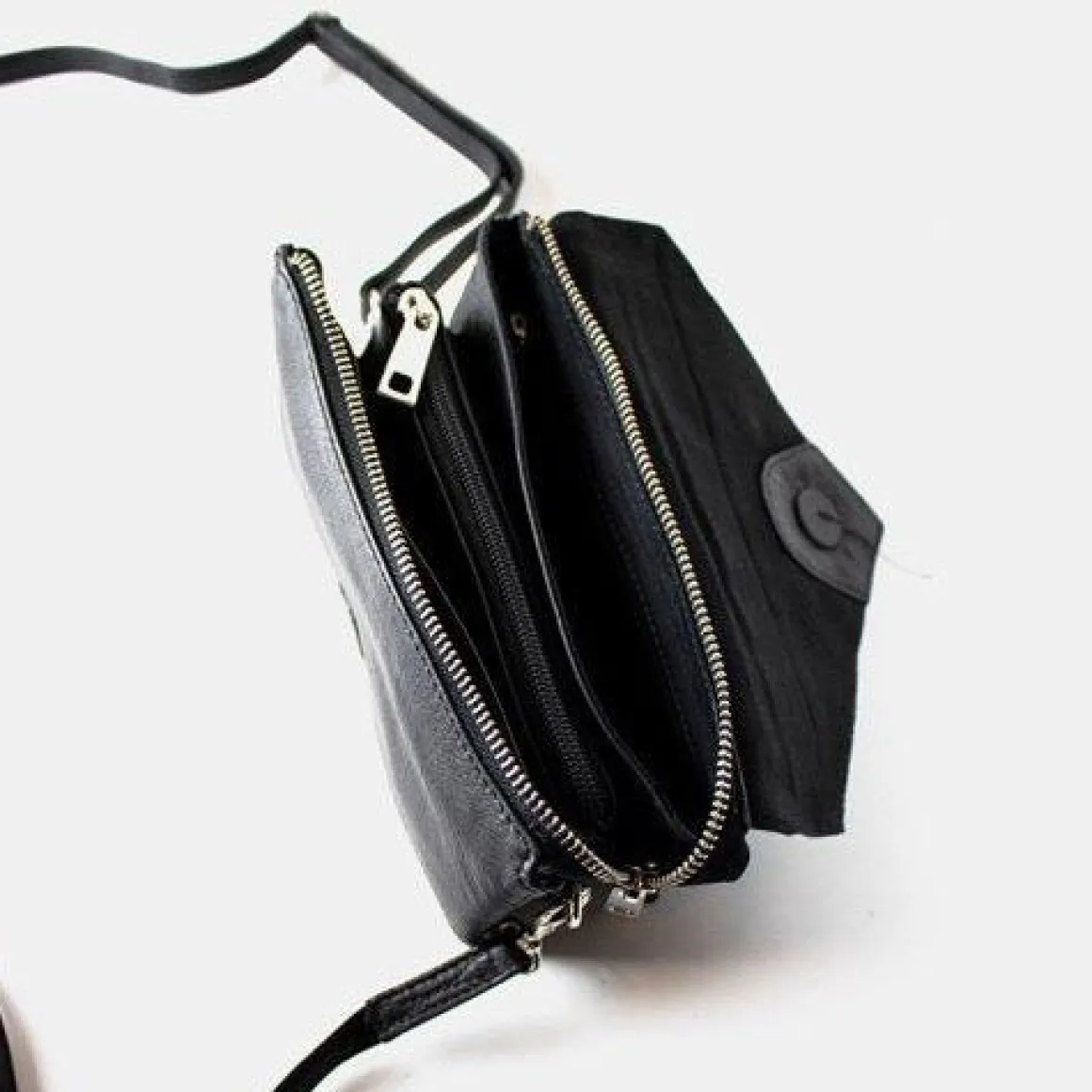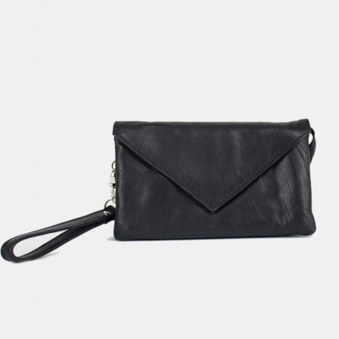 Liten clutch fra Dixie. Vesken lukkes med glidelås og klaff. Vesken er delt inn i et stort rom med to mindre innerlommer for enhver mobil. samt en lomme som lukkes med glidelås.