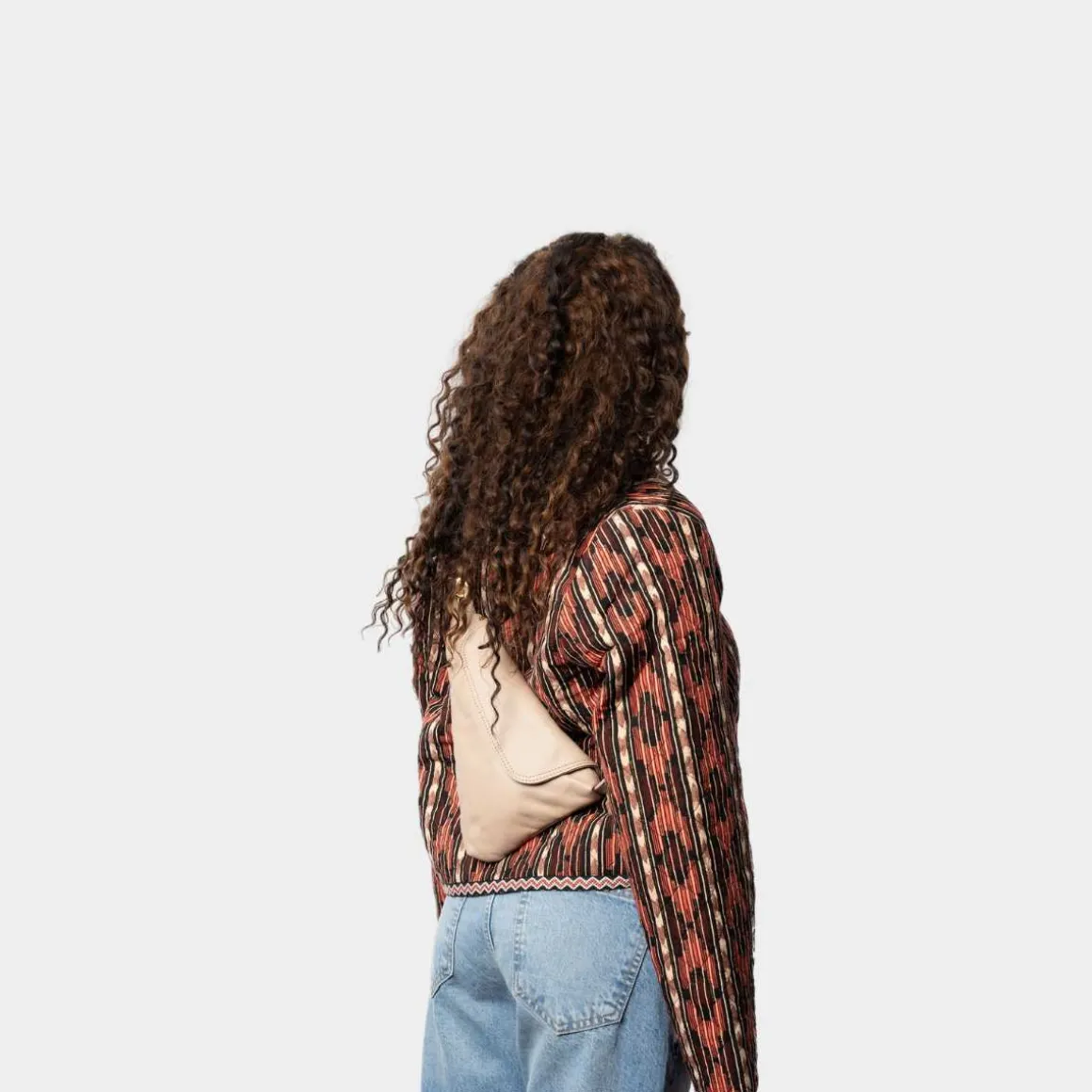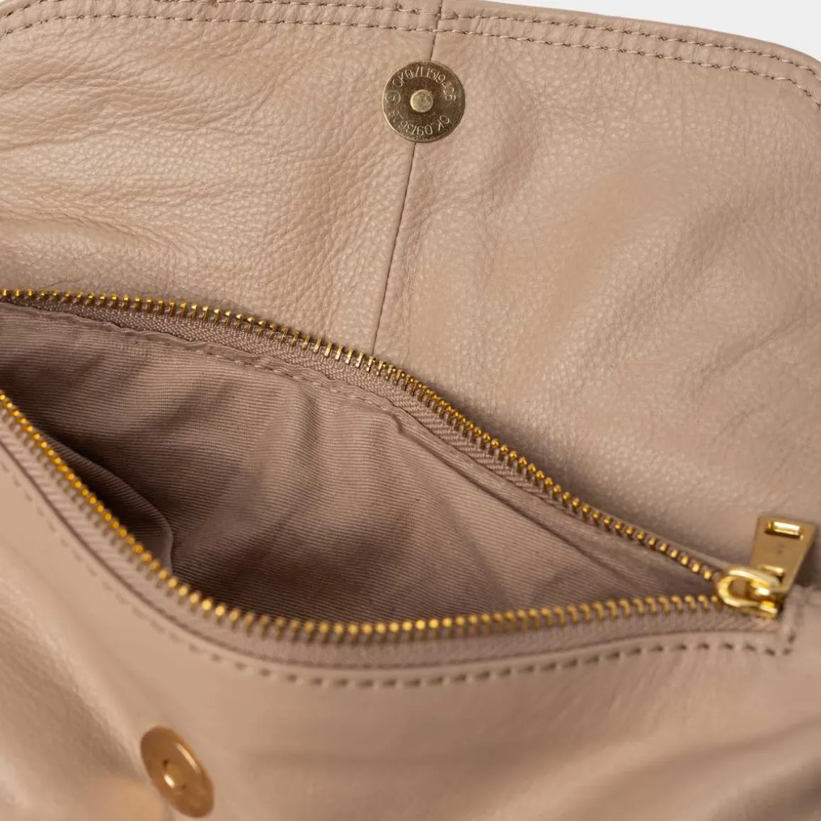 ReDesigned by Dixie, Franka i taupe. Vesken er laget av lær, og dens unike trekantede form sammen med klaffelukking gir et moderne uttrykk. Denne vesken kombinerer mote med funksjonalitet, og sikrer at du holder stilen selv når du er på farten.