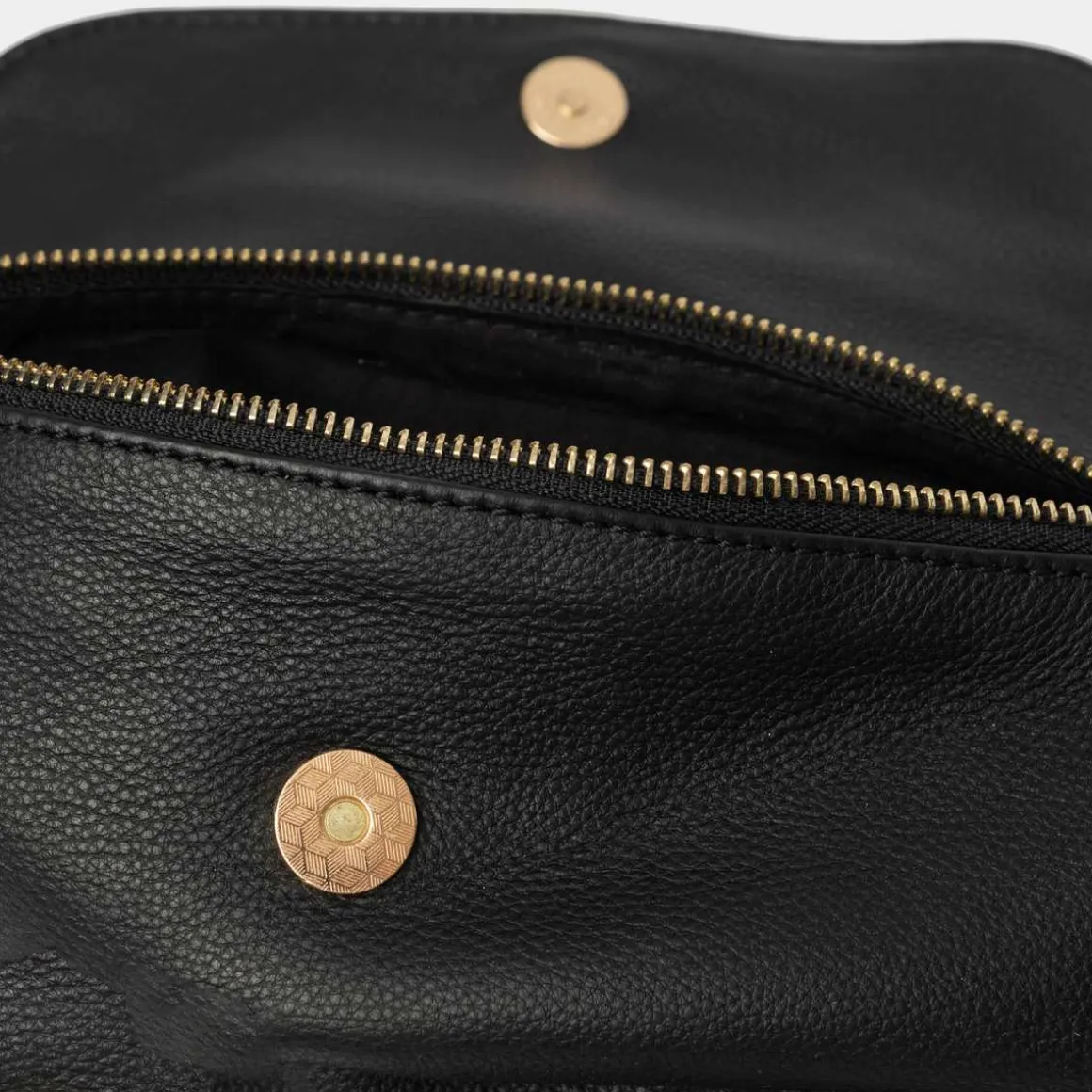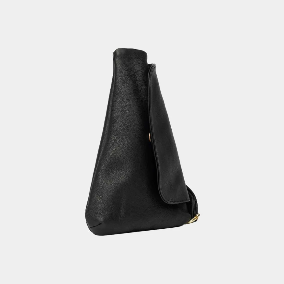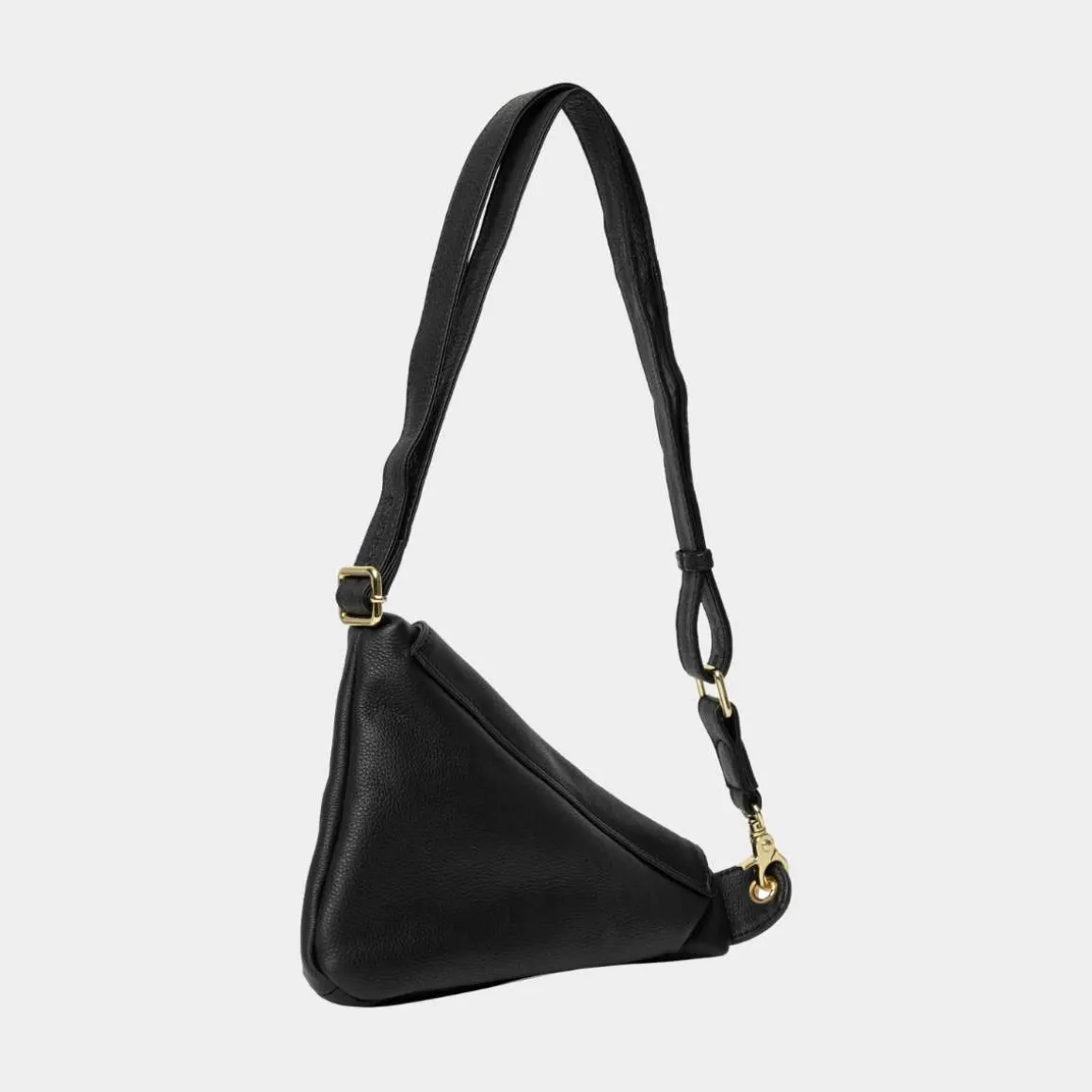 ReDesigned by Dixie, Franka i svart. Vesken er laget av lær, og dens unike trekantede form sammen med klaffelukking gir et moderne uttrykk. Denne vesken kombinerer mote med funksjonalitet, og sikrer at du holder stilen selv når du er på farten.