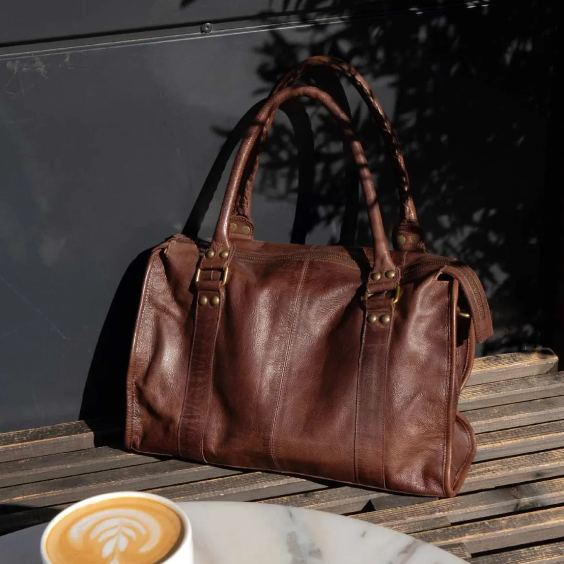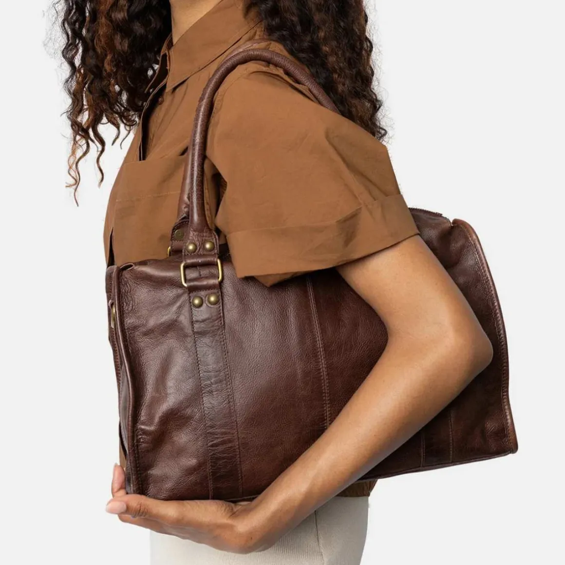 Miri Big fra Redesigned by Dixie er en stilig og elegant skulderveske, designet med et tidløst og klassisk uttrykk. Vesken har to solide bærehåndtak som gjør den perfekt å bære på skulderen – den leveres også med en justerbar crossbody-reim. På forsiden er vesken fremhevet med to vertikale sømmer og detaljer i messingfarget metall, inkludert spenner og nagler, som gir et vintagepreg. Romslig og slitesterk – denne håndvesken er ideell til hverdagsbruk eller som et stilfullt tilbehør til en smart, avslappet antrekk.