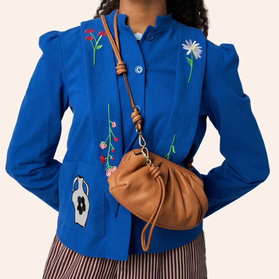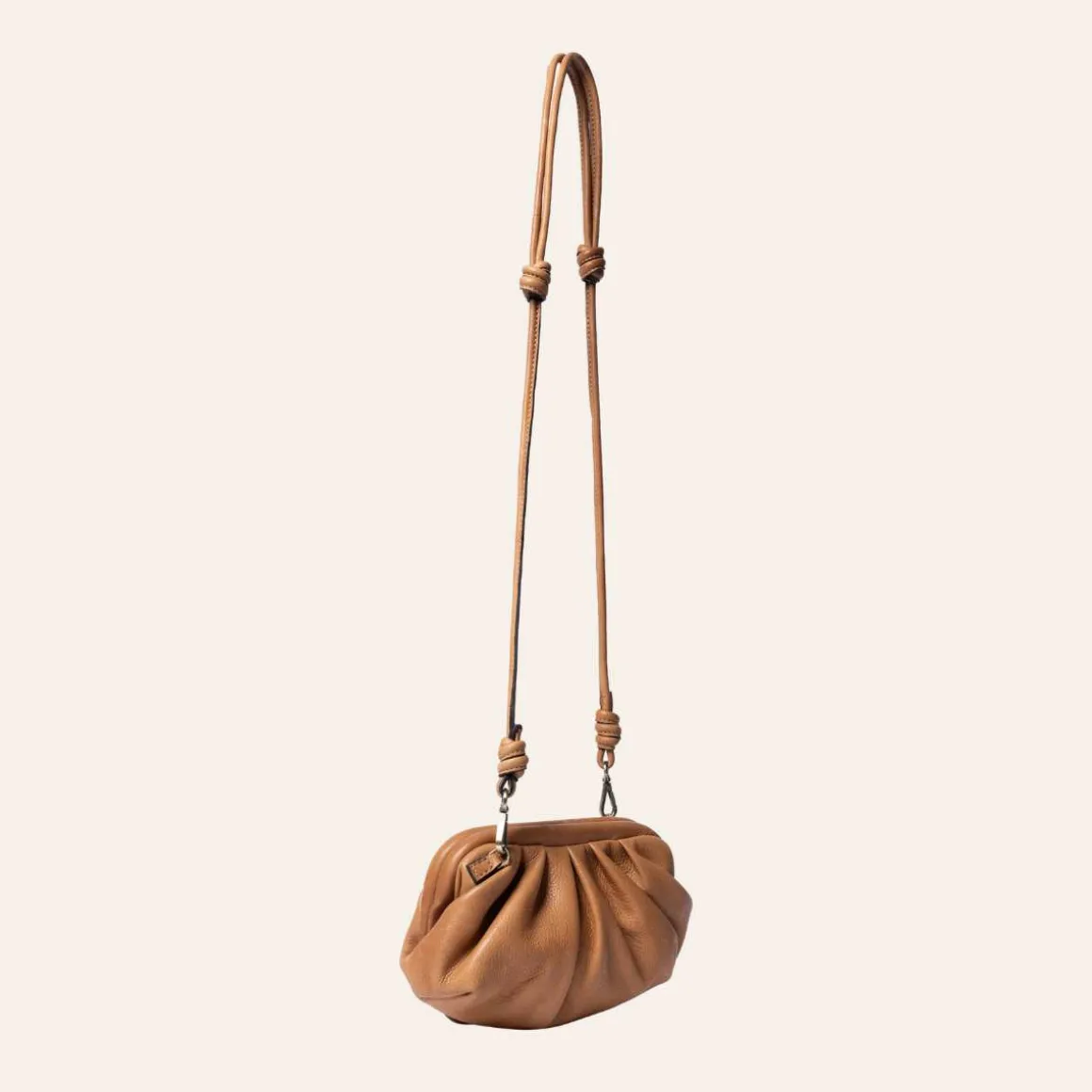 Vesken er håndlaget i 100 % skinn og leveres med to remmer: en praktisk clutch-rem og en justerbar crossover-rem for handsfree bruk. Hovedrommet åpnes og lukkes enkelt med magnetlukking, som gir et rent og minimalistisk uttrykk.