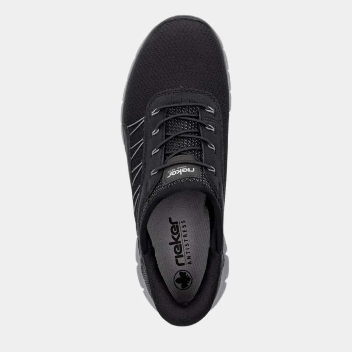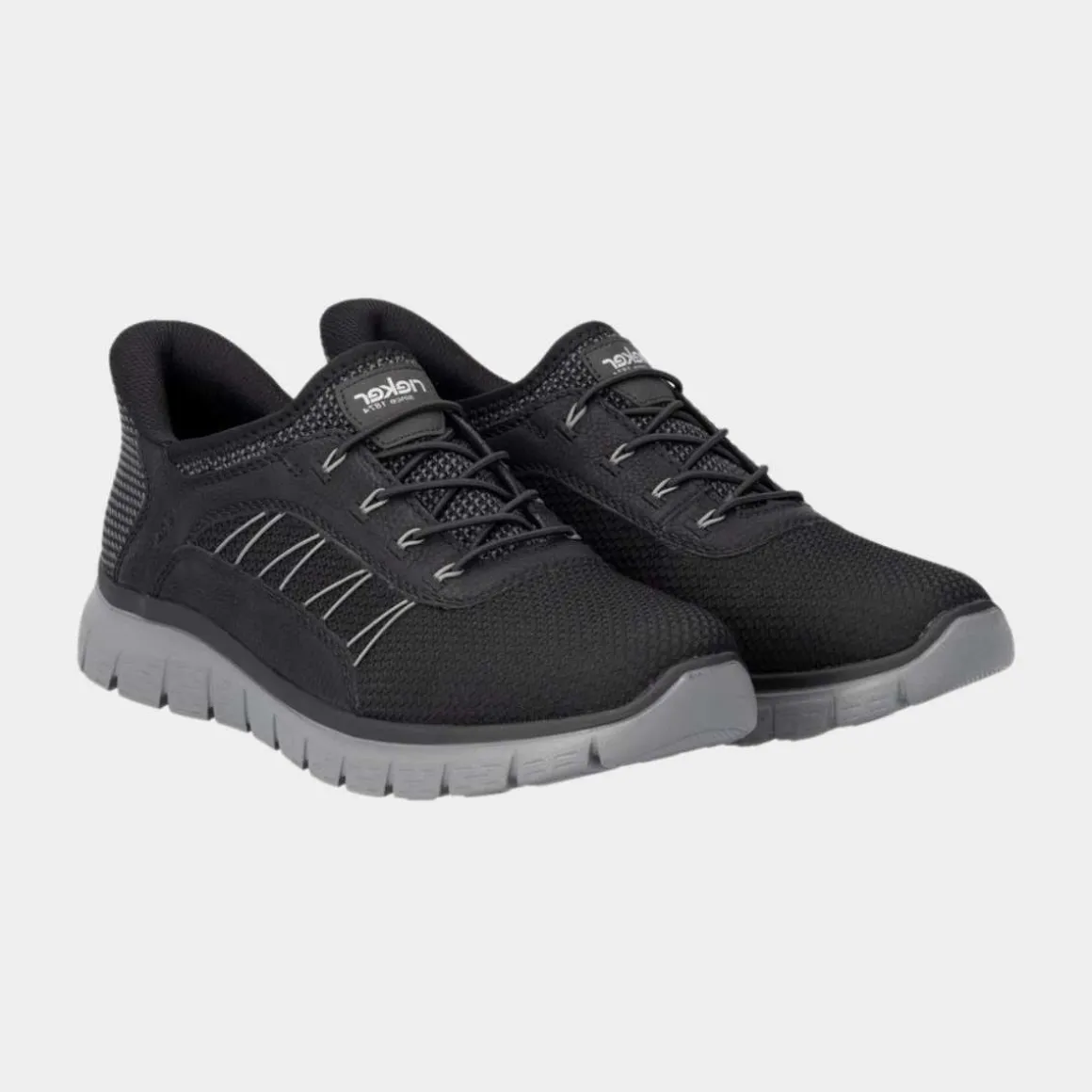 Disse asfalt-svarte Rieker-slippersene for menn imponerer med sitt moderne design og høye komfort. Den elastiske snøringen gjør det enkelt å ta dem på og av. Den fleksible og ultralette sålen lover godt grep, og den ekstra myke dekksoelen gir ekstra komfort.