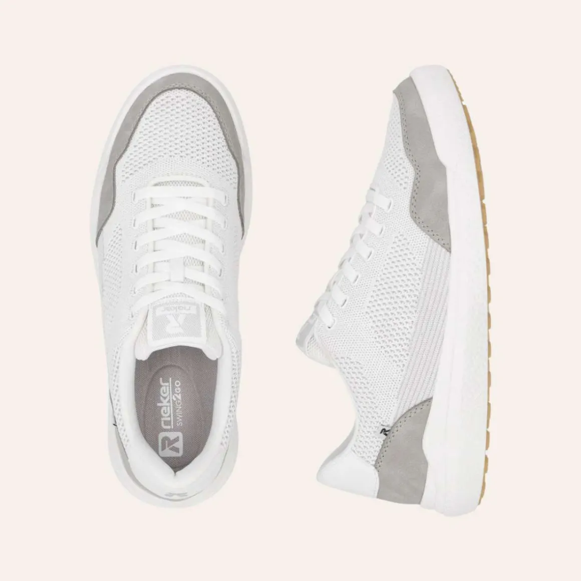 Disse stilige Rieker low-top sneakersene er laget av kvalitetsstoff og kombinerer komfort med funksjonalitet. Swing2GO-teknologien sørger for en innersåle med fotbuestøtte som gir føttene ekstra energi gjennom dagen.