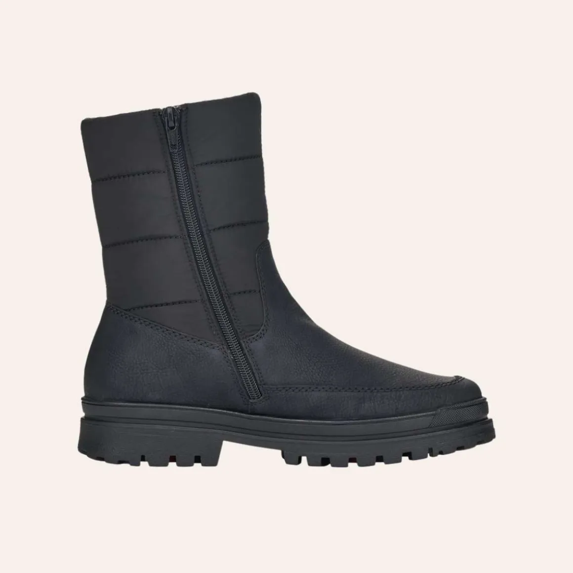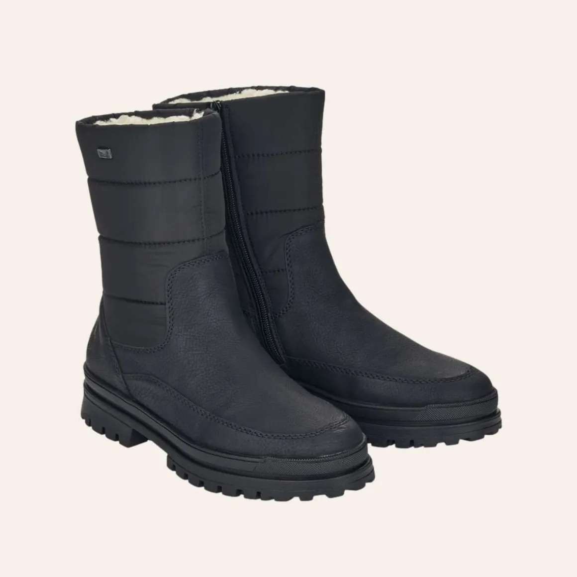 La kulden komme! Disse svarte Rieker vinterstøvlene til dame kombinerer tidløst design med høy komfort. Med en praktisk glidelås er de enkle å ta av og på, mens den robuste sålen gir godt grep og stabilitet på alle underlag.