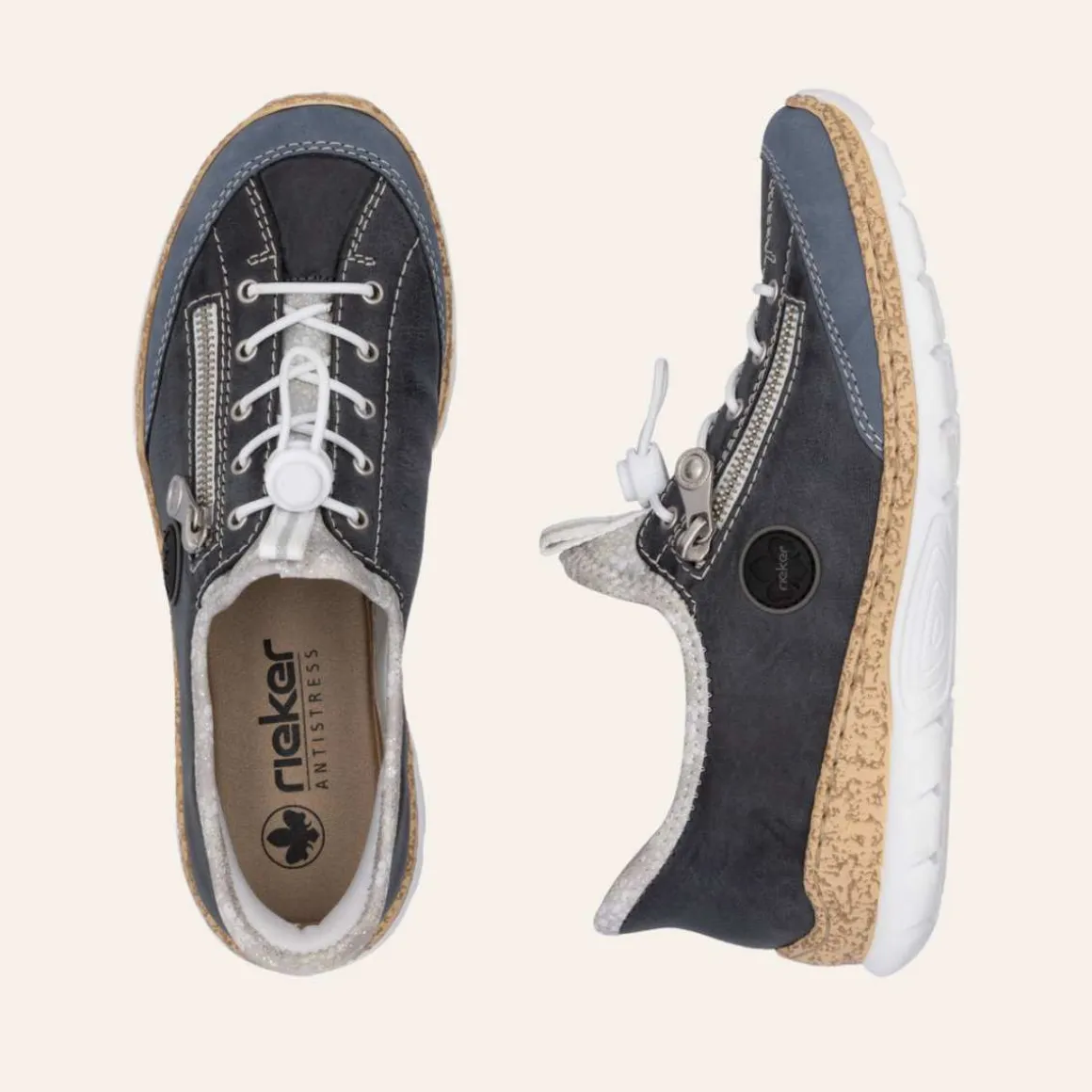Denne populære sneakers i en vakker lyseblå farge har elegante detaljer ved åpningen, som gir et moderne og stilfullt uttrykk.