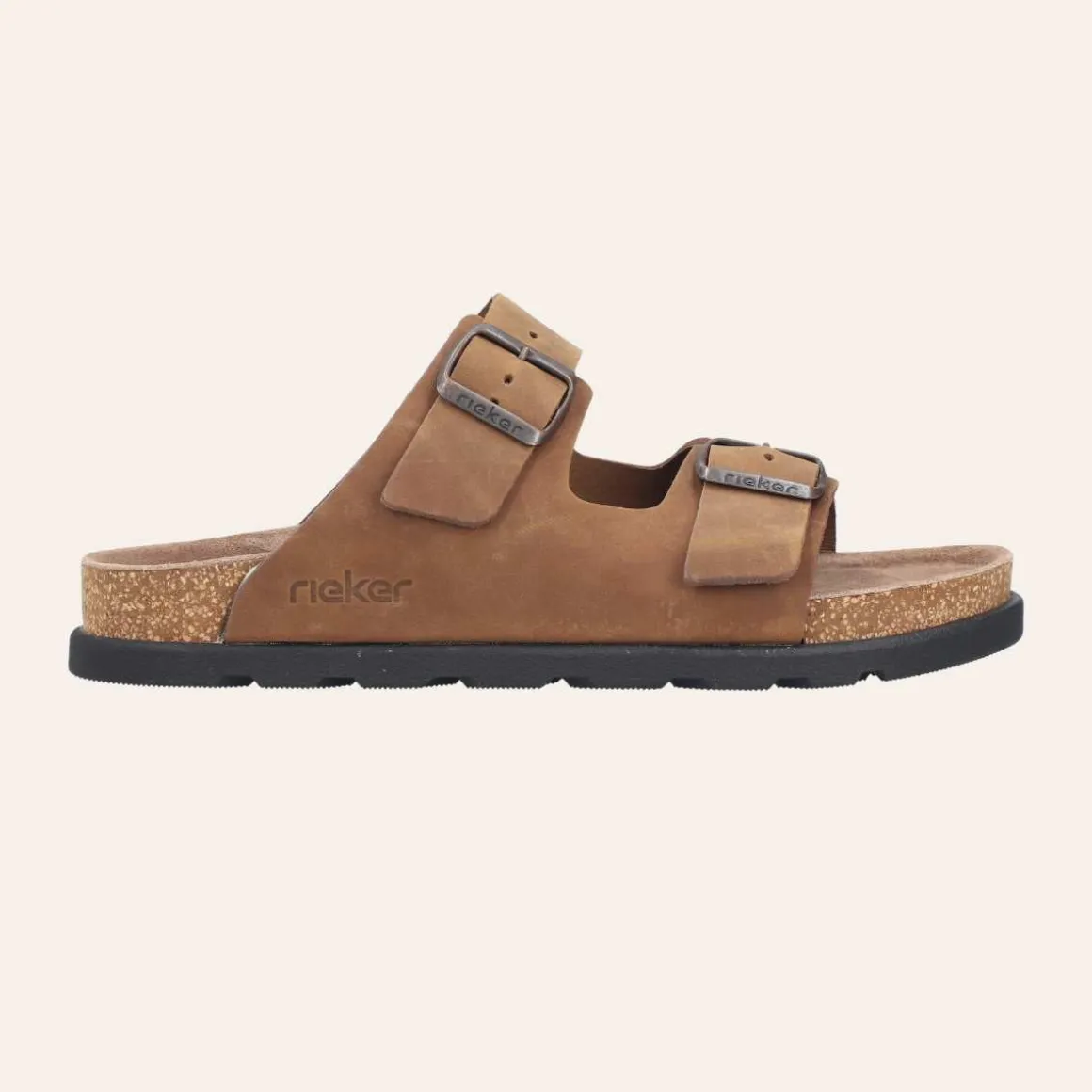 Disse brune herresandalene fra Rieker i skinn har to remmer med justerbare spenner, som gjør det enkelt å tilpasse passformen for maksimal komfort. Den formede innersålen i skinn gir behagelig støtte i hvert steg, slik at du trygt kan legge ut på sommerens eventyr.