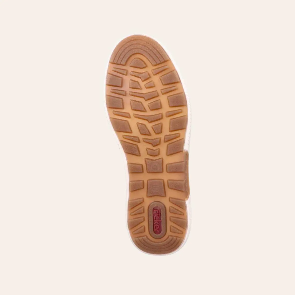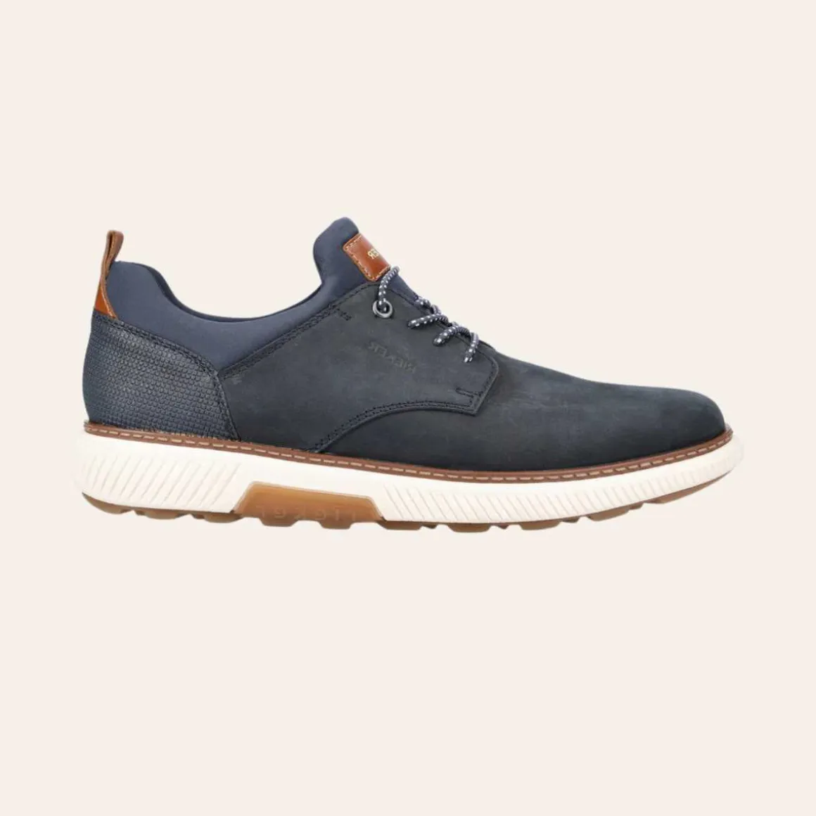 Disse blå skoene fra Rieker i semsket skinn kombinerer komfort og funksjonalitet. Den elastiske snøringen gjør skoene enkle å ta på uten behov for lukking. Den lette og gripevennlige sålen gir godt fotfeste på ulike underlag. En polstret, uttakbar MemoCup-innersåle sørger for ekstra komfort, og med ekstra bredde (H) får forfoten god plass.