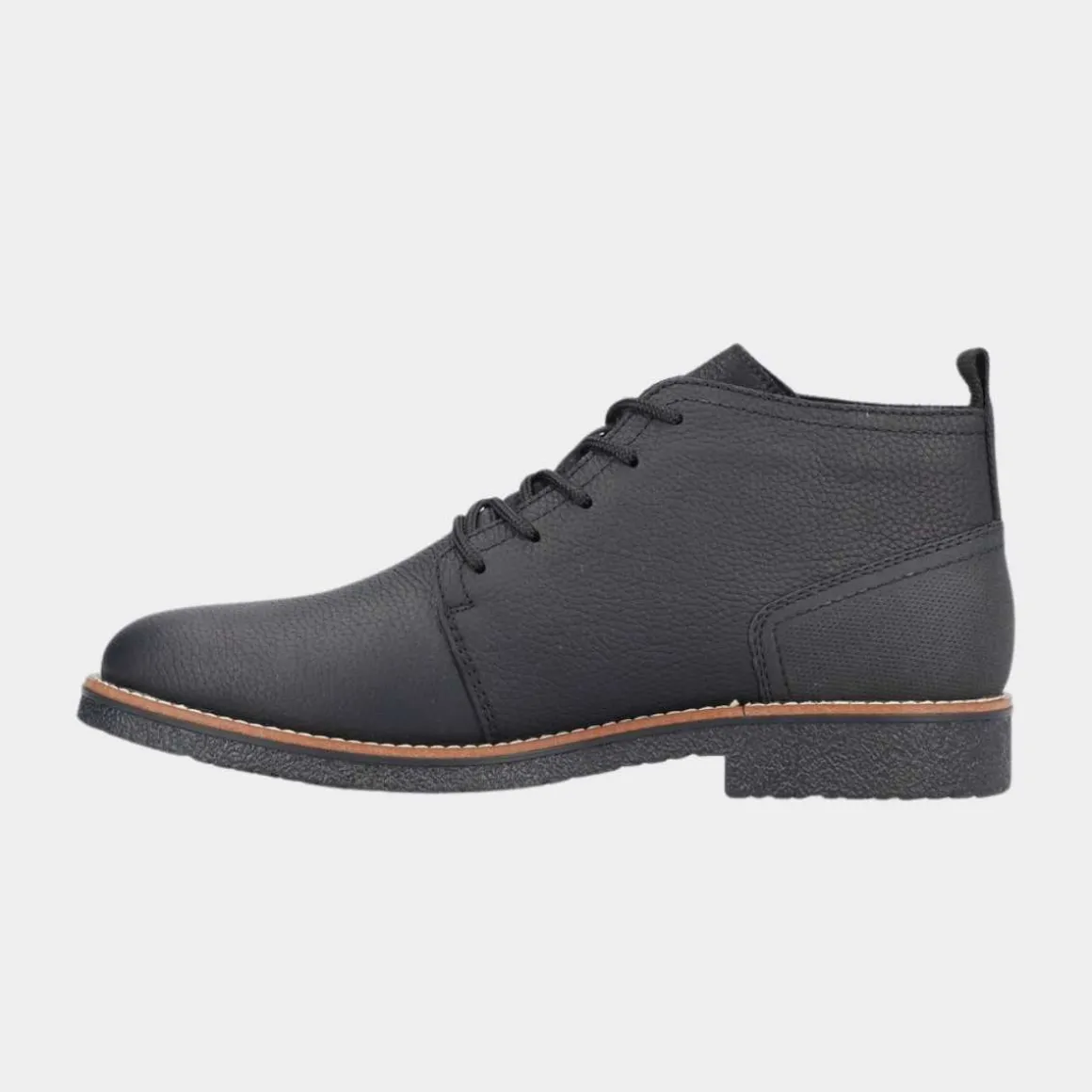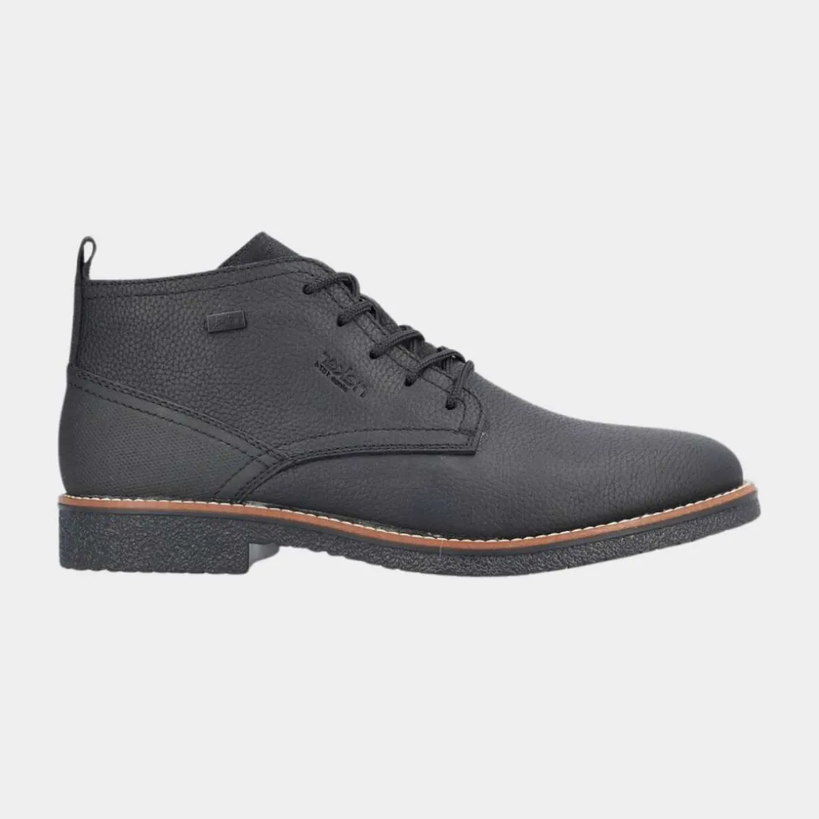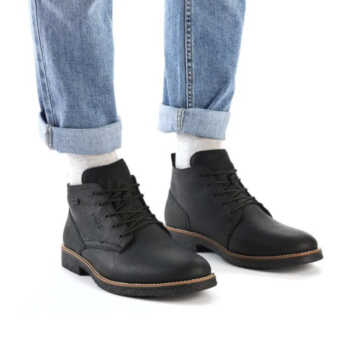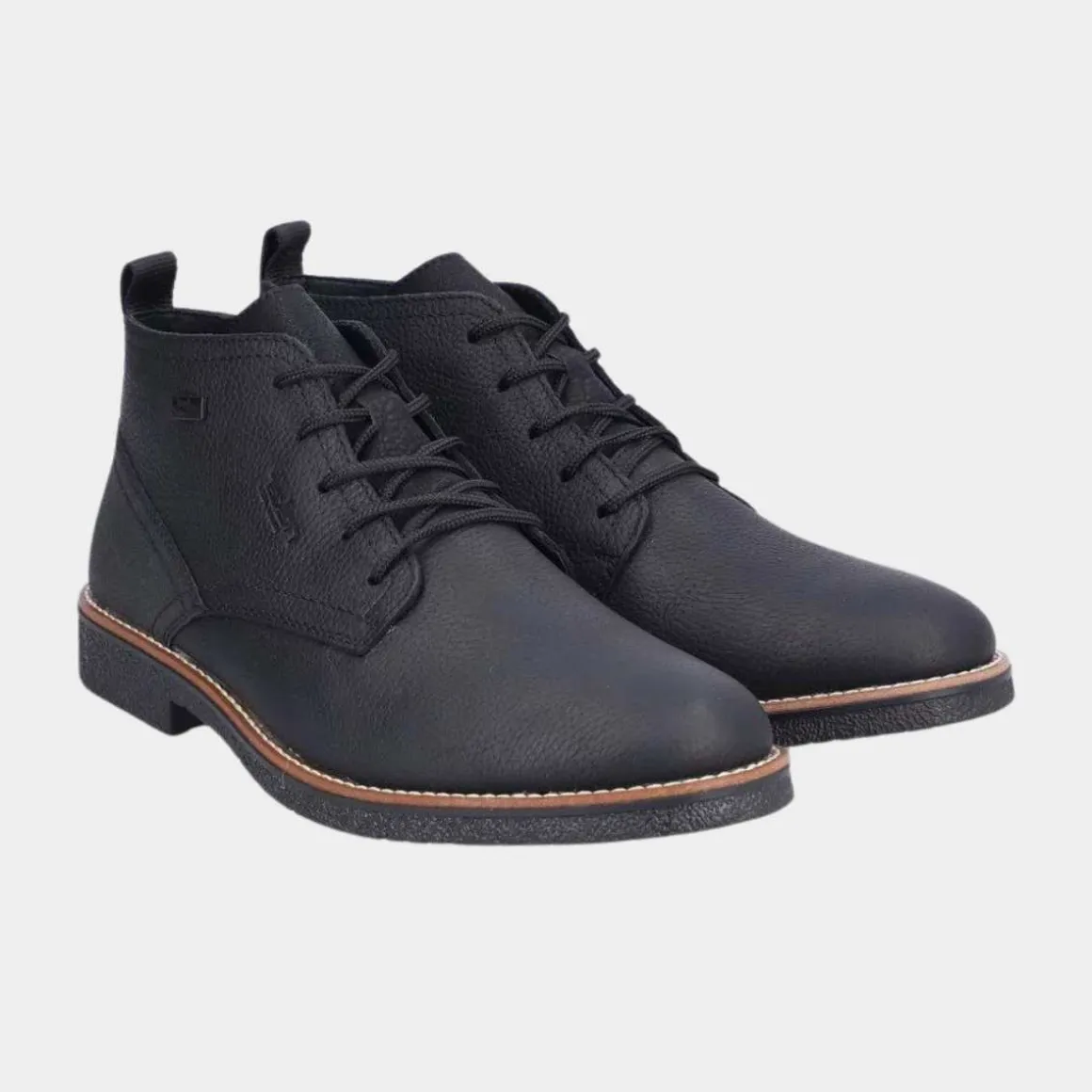 Disse grafitt-svarte snørestøvlene fra Rieker for menn, laget av glatt lær, er stilige, komfortable og funksjonelle for kalde dager. Snøringen sikrer at skoen alltid sitter perfekt. Den gripevennlige sålen forhindrer uønsket glid, og dekksoelen er ekstra myk.