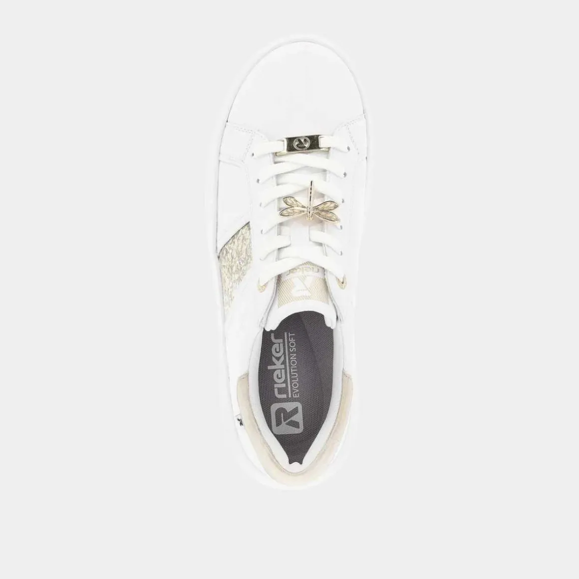 Minst like komfortable som kule! Du trenger ikke velge mellom stil, komfort og funksjon med disse lave Rieker-skoene. Laget av glatt hvit skinn. Snøringen gjør også skoen justerbar.