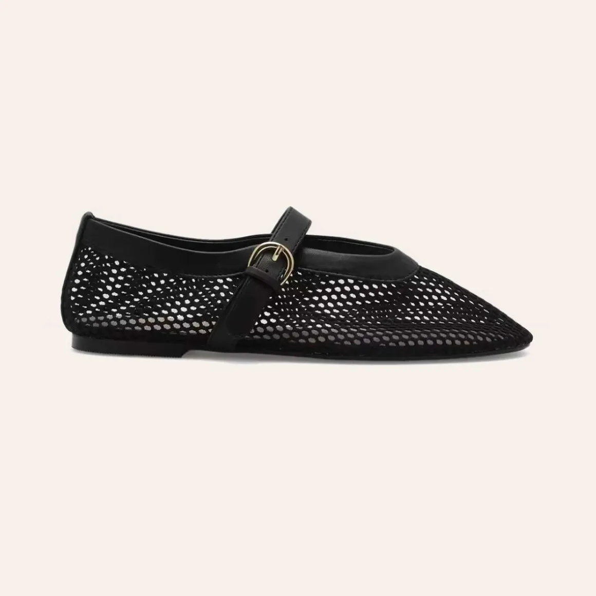 Overdelen er designet i en luftig mesh-konstruksjon med detaljer i imitert mykt skinn, som gir et luksuriøst preg. Den justerbare stroppen med gullspenne over vristen sikrer god passform, mens den myke polstrede innersålen tilfører komfort gjennom hele dagen.