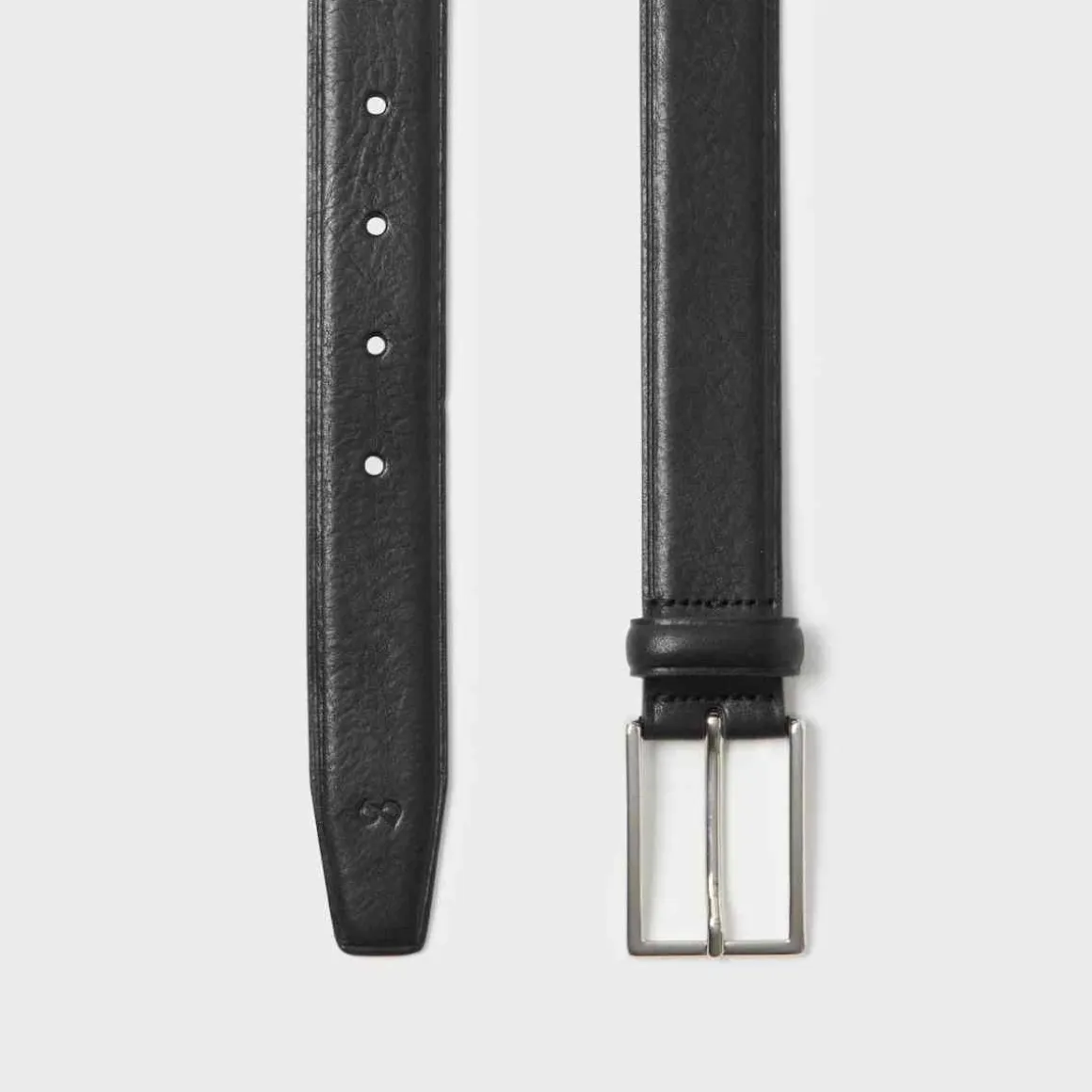 Belmonte i skinn fra Saddler. Laget i Italia. Beltet har lett sydde kanter og skaper et elegant utseende. Spennen har et stilig design og er laget av skinnende sølvfarget metall. Læret i dette produktet er av høyeste kvalitet og har blitt behandlet i garverier sertifisert av Leather Working Group.