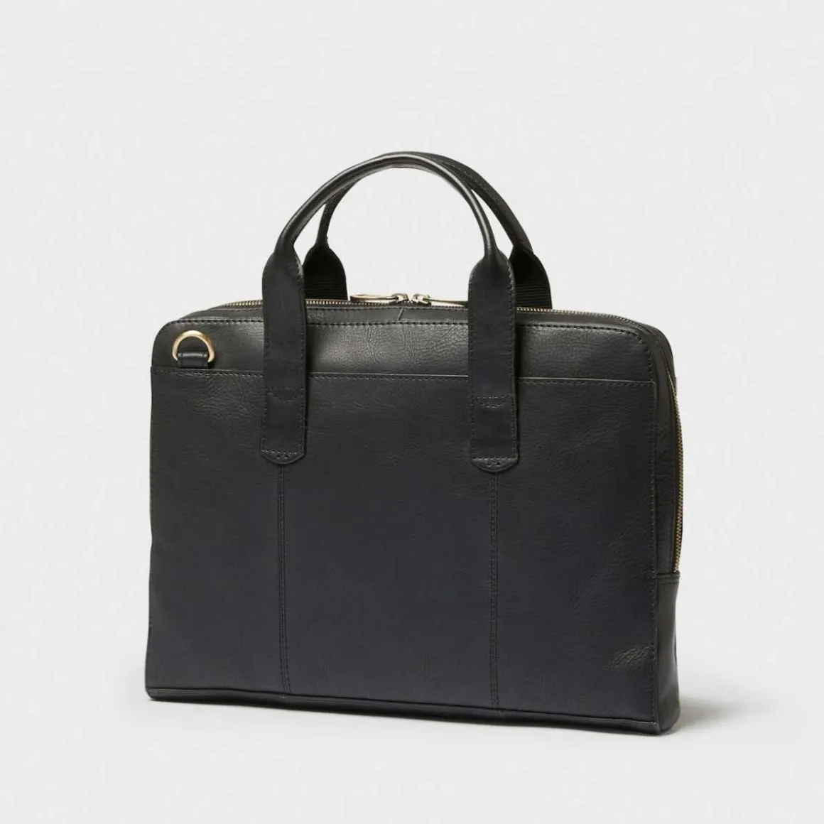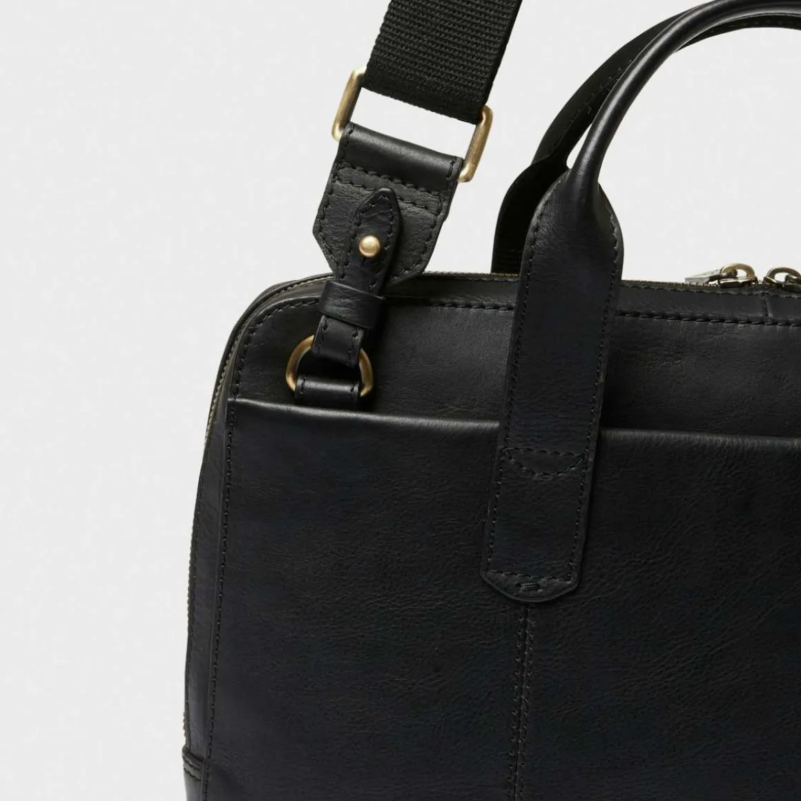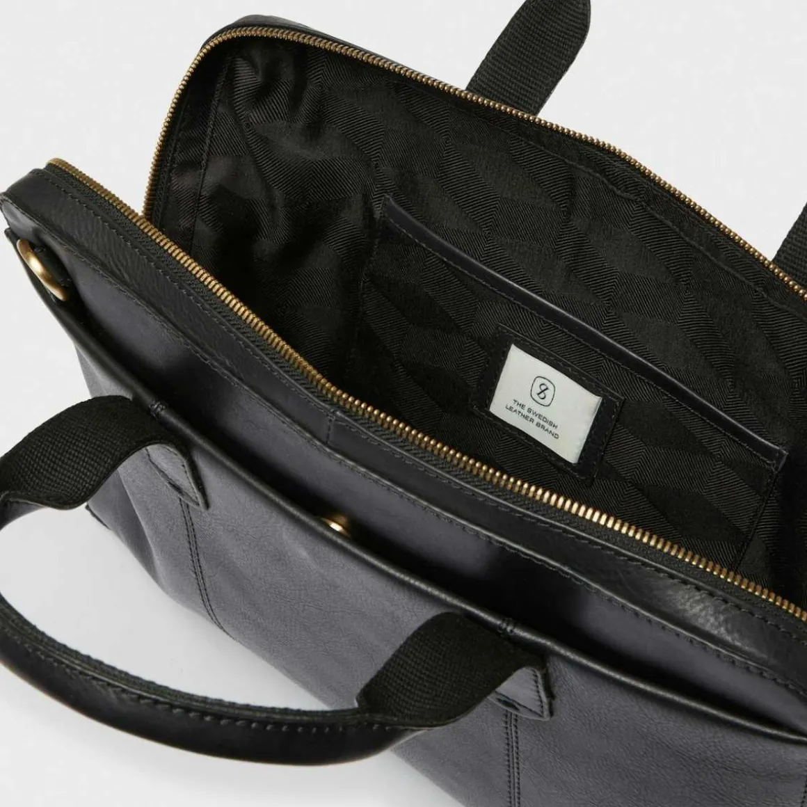 Dataveske Edslan fra Saddler. En stilren, kompakt dataveske laget i brunt full grain-lær. Denne lille datavesken har et stort hovedrom med toveis glidelås og kan åpnes helt for enkel bruk. Vesken har plass til en 13” eller 14” bærbar datamaskin og har tre innvendige lommer samt pennholdere. Det finnes en ekstra slip-in lomme med skjult magnetisk knapp på forsiden av vesken. Datavesken Edslan har både korte lærhåndtak samt en vevd justerbar og avtagbar skulderrem med en lengde på maks 145 cm og min 84 cm. Datavesken beskytter din bærbare datamaskin med vattert bunn samtidig som den ser stilren og klassisk ut. Spenne av børstet messingfarget metall. Læret i dette produktet er av høyeste kvalitet og har blitt behandlet i et garveri sertifisert av Leather Working Group.