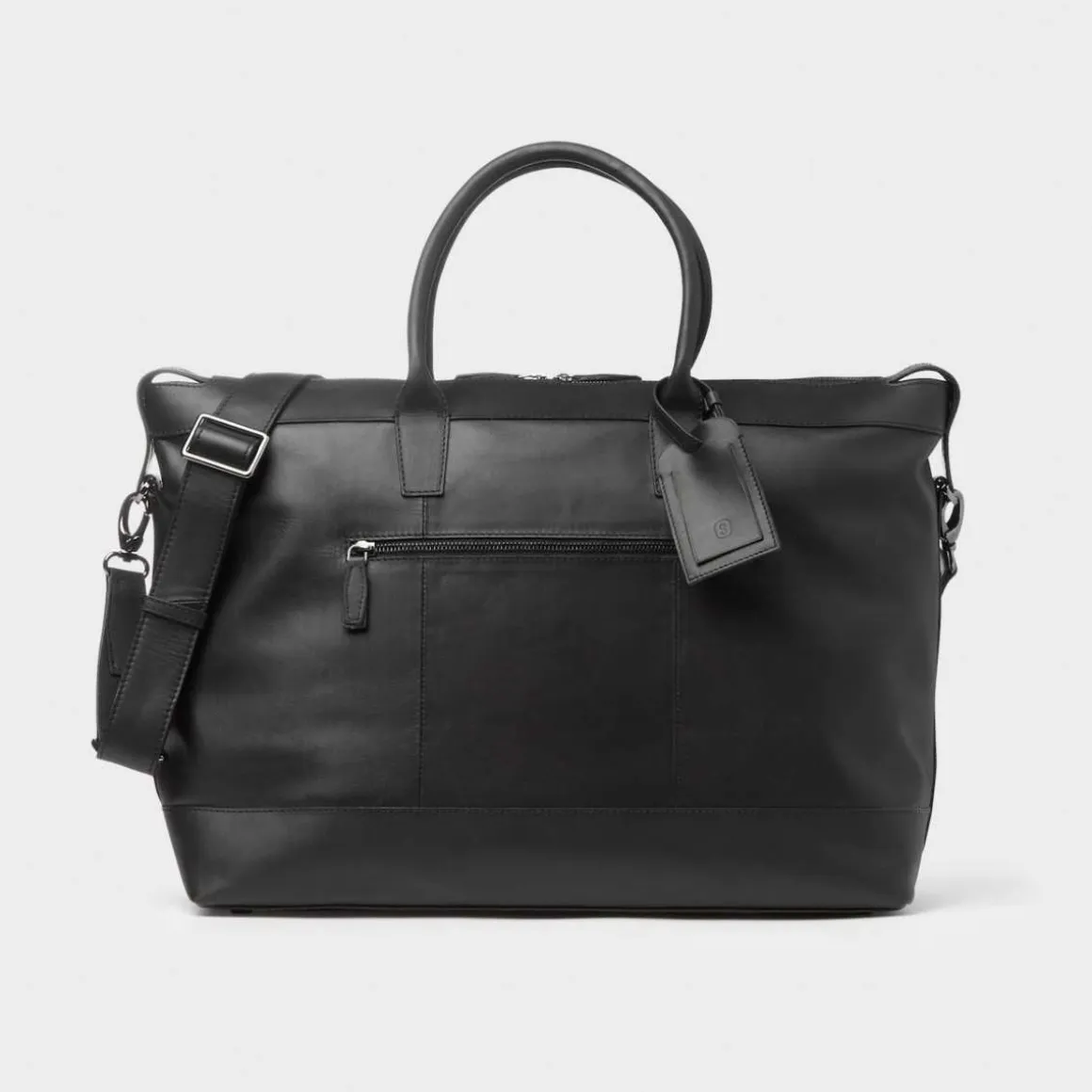 Weekendbag Hermanus fra Saddler. En ekstra stor bag, perfekt som håndbagasje. Laget av glatt og stilig fullnarvet skinn og har et minimalistisk design. Innsiden har to rom, ett åpent og ett med glidelås, samt et stort polstret rom for en datamaskin opp til 15″. Vesken kommer med en mørk sølvfarget metallglidelås. Glidelåsen åpnes hele veien rundt slik at du kan åpne vesken helt, en praktisk detalj.
