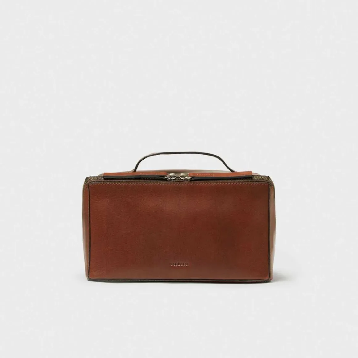 Toalettmappen passer utmerket når du er på reise, men fungerer også som oppbevaring av hygiene- og skjønnhetsprodukter hjemme. Laget av svart full grain-bøffellær med antikk sølvfarget spenne.