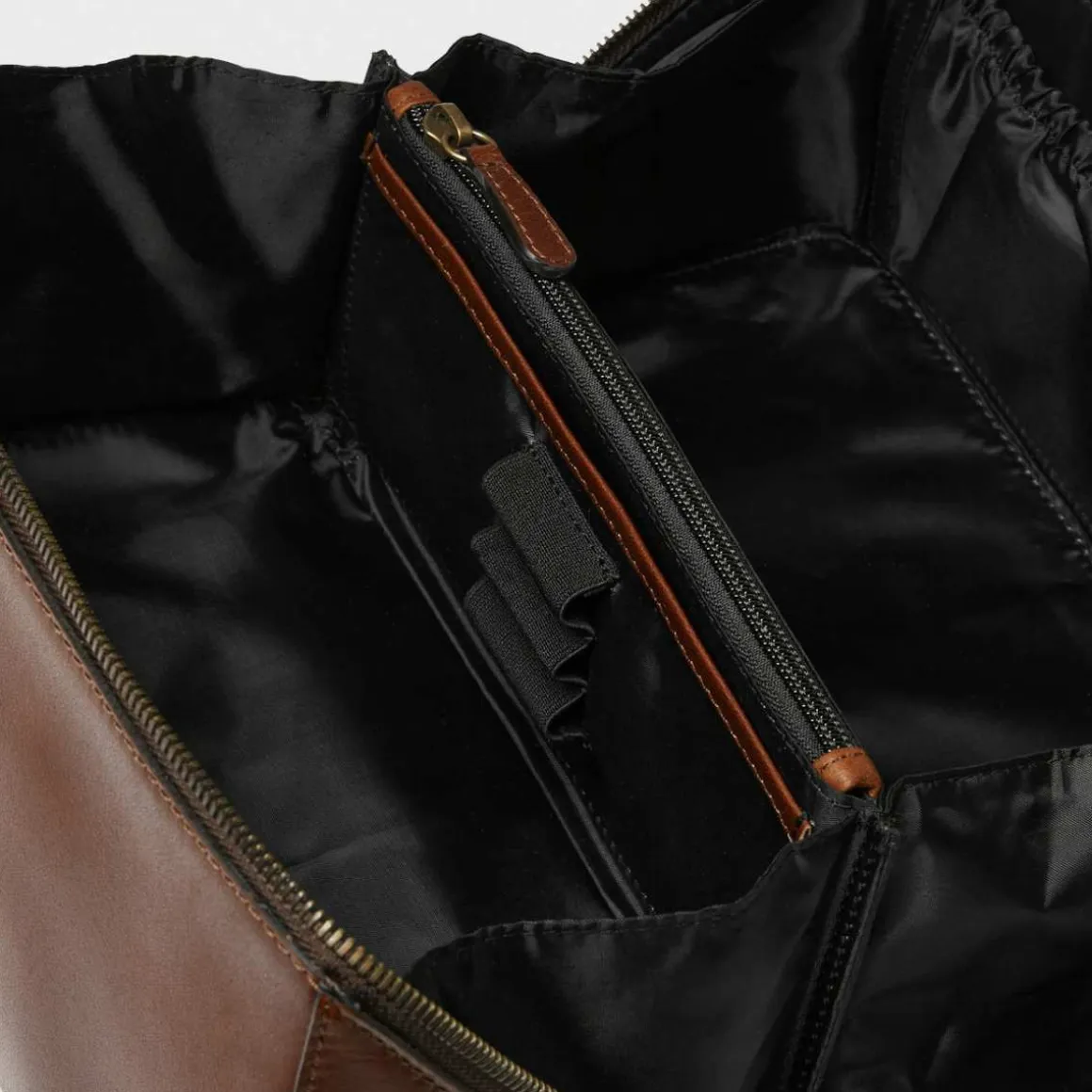 Toalettmappe Visten fra Saddler. En velstrukturert, romslig toalettmappe med gjennomtenkt design og funksjonell brukeropplevelse. Vesken har en solid design og en lang toveisglidelås plassert diagonalt. Når toalettmappen åpnes består den av to store rom med en mindre lomme med glidelås som skillevegg.