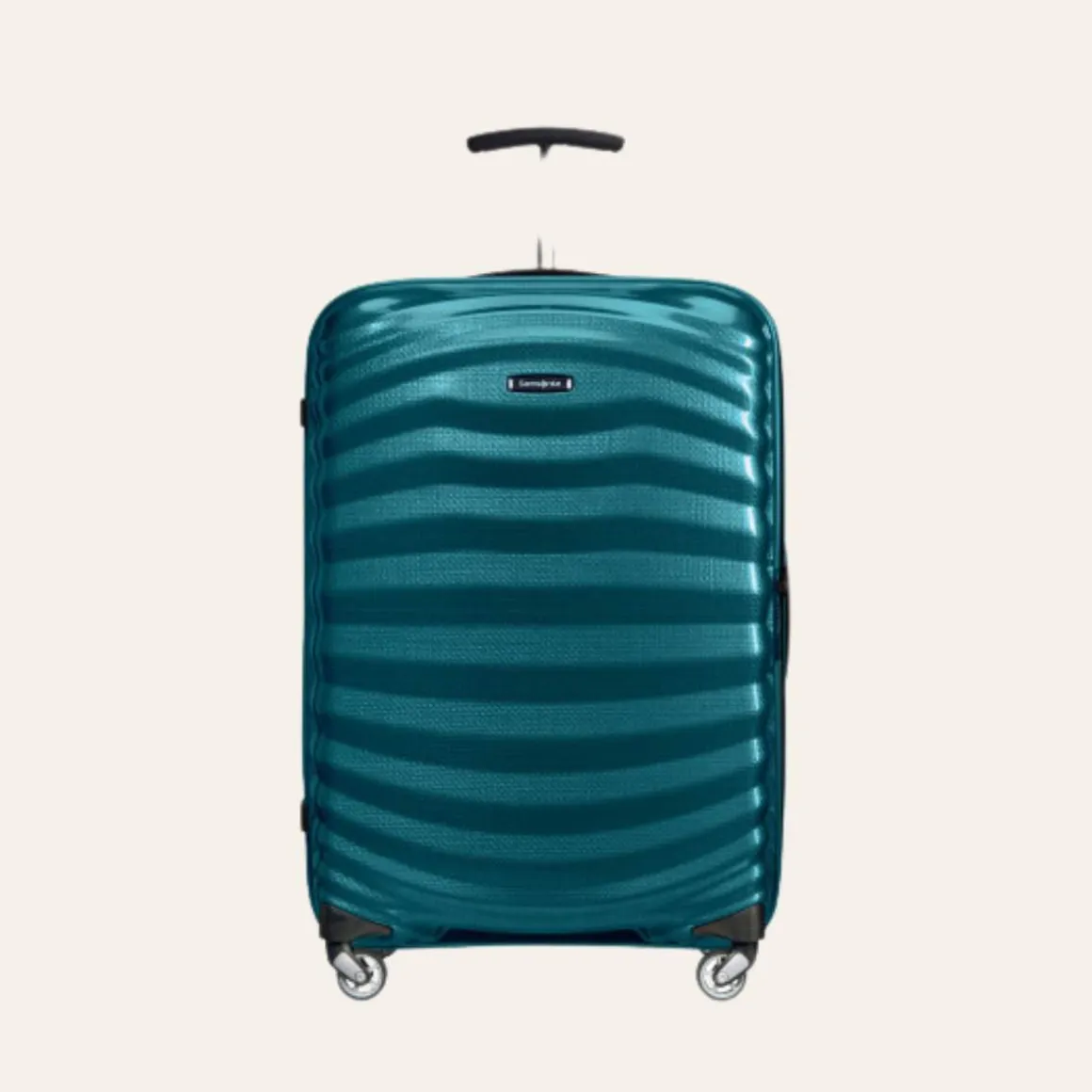 Samsonite Lite-Shock koffert. Denne harde koffertens selvforsterkede, organiske design og ultralette komfortkomponenter har gitt en ekstra lett bagasjekolleksjon som setter en ny standard. Designens støtabsorberende natur sørger for at Light-Shock er sterk selv uten et tykt utvendig skall.