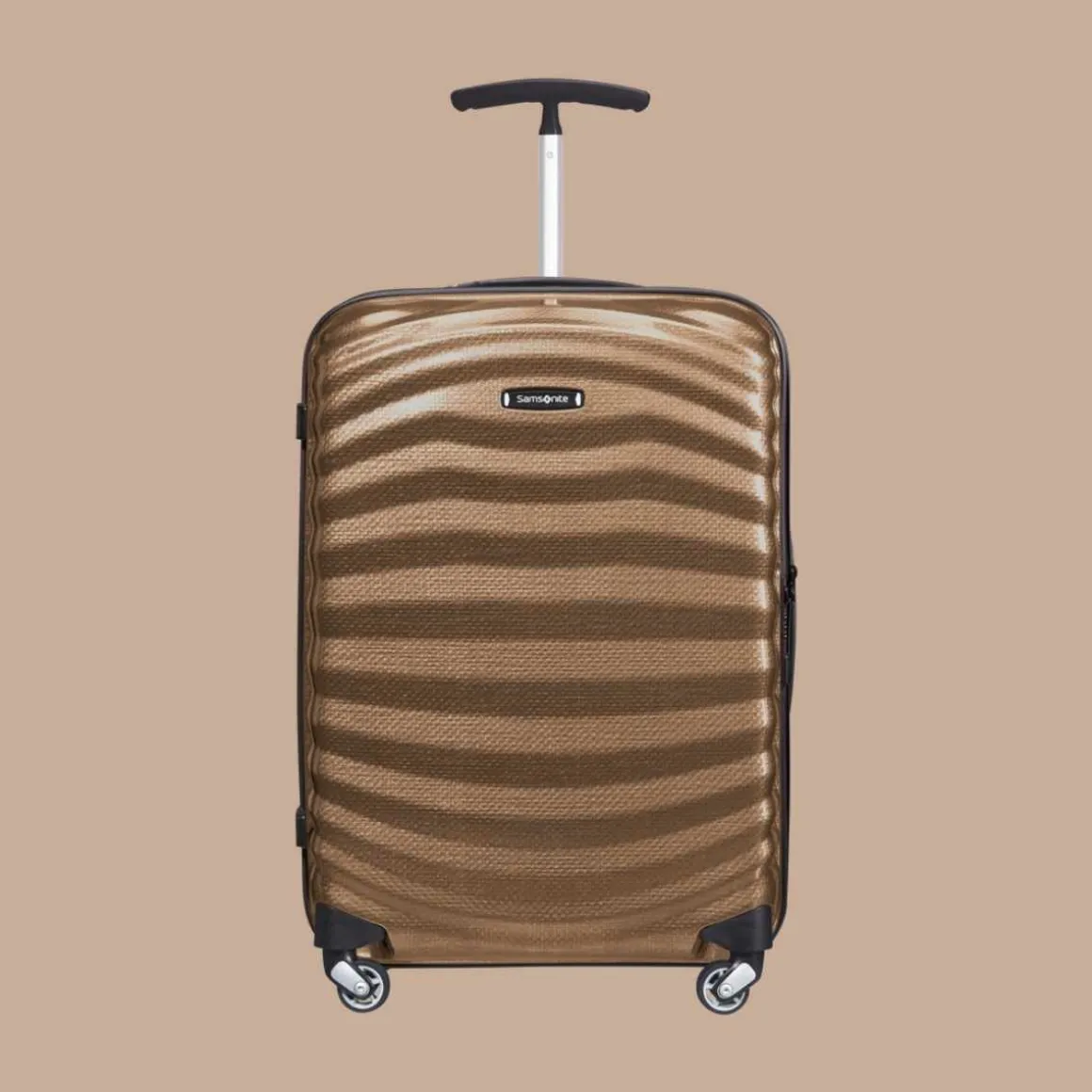 Samsonite Lite-Shock koffert. Denne harde koffertens selvforsterkede, organiske design og ultralette komfortkomponenter har gitt en ekstra lett bagasjekolleksjon som setter en ny standard. Designens støtabsorberende natur sørger for at Light-Shock er sterk selv uten et tykt utvendig skall.