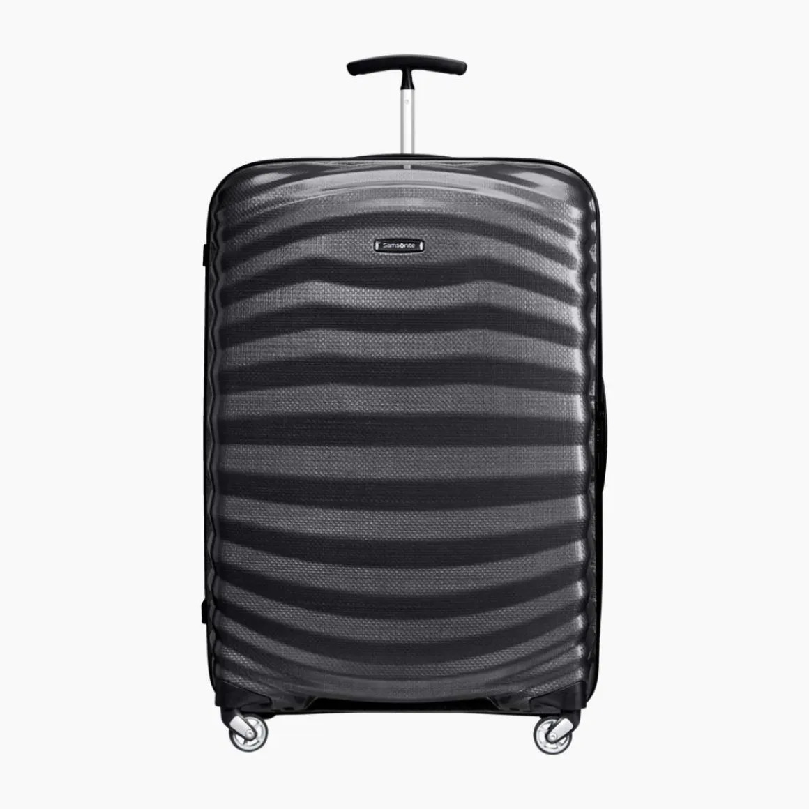 Samsonite Lite-Shock koffert. Denne harde koffertens selvforsterkede, organiske design og ultralette komfortkomponenter har gitt en ekstra lett bagasjekolleksjon som setter en ny standard. Designens støtabsorberende natur sørger for at Light-Shock er sterk selv uten et tykt utvendig skall.