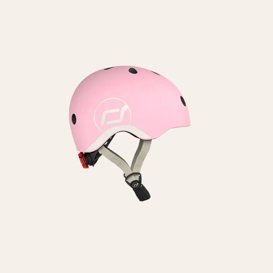 Denne hjelmen kommer i en lys rosa farge, og har en magnetisk lukking som gjør at barn enkelt kan åpne og lukke hjelmen selv. Magneten sørger også for at huden aldri blir klemt!