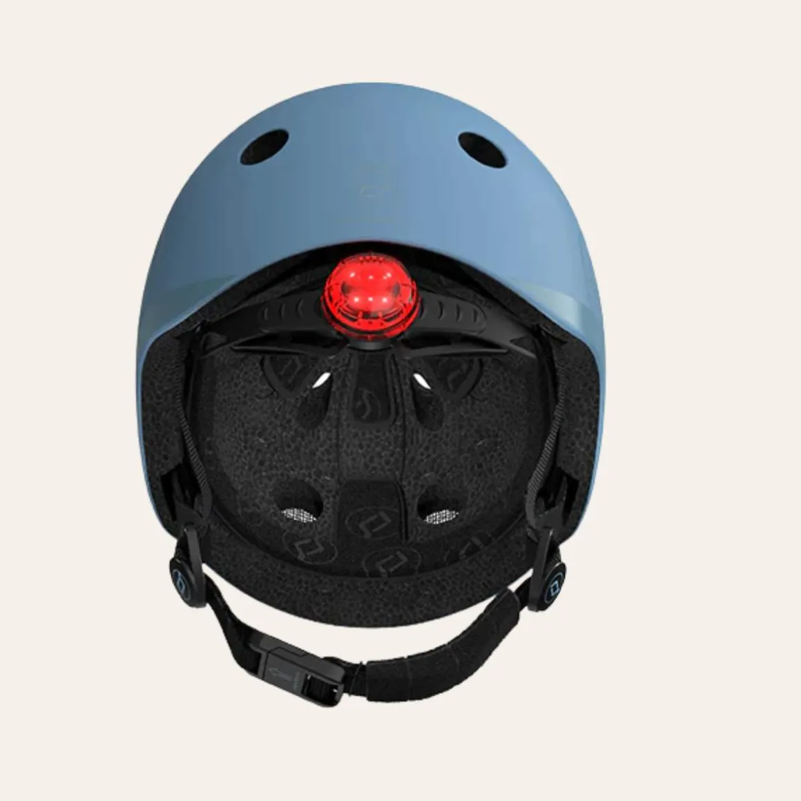Denne hjelmen kommer i en nydelig blågrå farge, og har en magnetisk lukking som gjør at barn enkelt kan åpne og lukke hjelmen selv. Magneten sørger også for at huden aldri blir klemt!