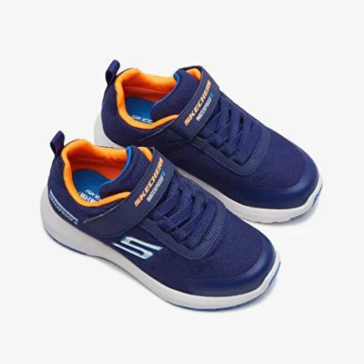 Skechers Dynamic Tread er en vanntett sko til junior som holder føttene tørre, perfekt for utendørs lek og løping. Skoen er lett å ta på med et elastisk strikk og lukkes med borrelås foran. I denne skoen er komfort og kvalitet på topp. Skoen har en støtdempende mellomsåle og en ekstra forsterkning ses på tåen, som gjør skoen ekstra slitesterk.