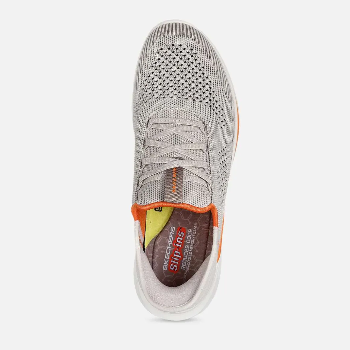 Med Skechers Slip-ins blir hverdagskomfort din ekstra god. Denne modellen skiller seg ut med sitt Heel Pillow design, som garanterer både smidighet og pusteevne med sin finstrikkede overdel. Innersålen, forsterket med kull og integrert med Skechers Air-Cooled Memory Foam, former seg perfekt etter føttene dine, noe som gir ubesværet komfort og en avkjølende følelse.