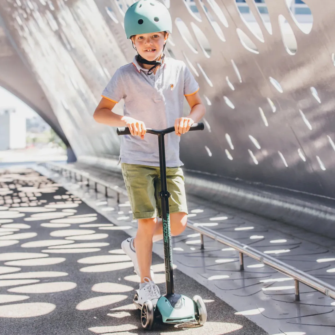 Highwaykick 5 LED kommer med høydejusterbart styre, brede front hjul med hvite LED-lys og et stort bakhjul for best mulig sving. Ståplaten er ekstra bred og lang, og tåler vekt opptil 80kg.