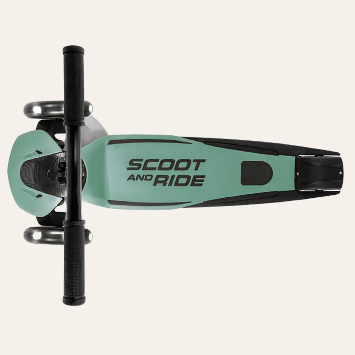 I likhet med Scoot & Ride mindre LED-modell kommer også denne sparkesykkelen med LED-hjul med hvitt lys.