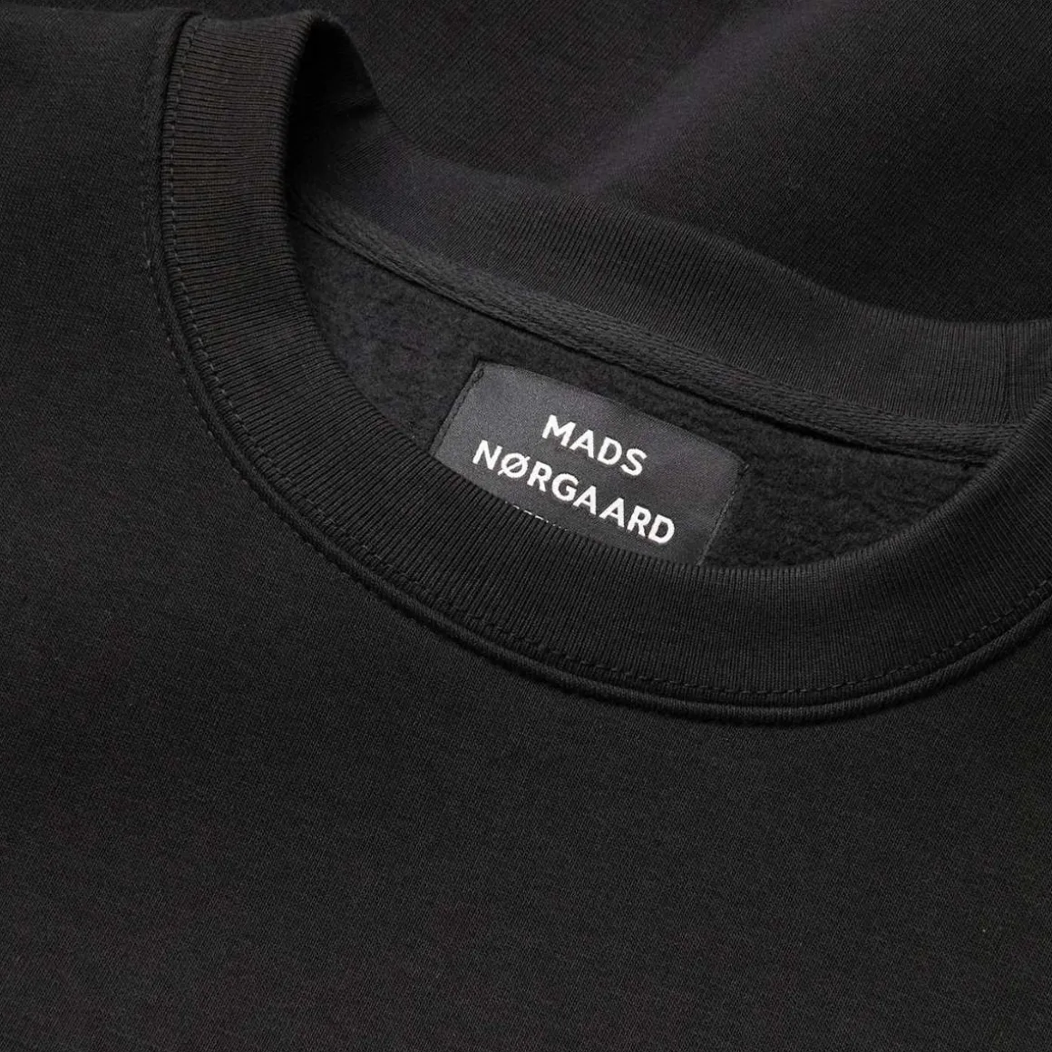 Mads Nørgaard sin sweatshirt Standard Crew Logo Sweat er laget av 65 % bomull og 35 % polyester med en myk børstet bakside. Passformen er vanlig, den har ribbestrikkede kanter og på brystet er det trykt en liten logo.