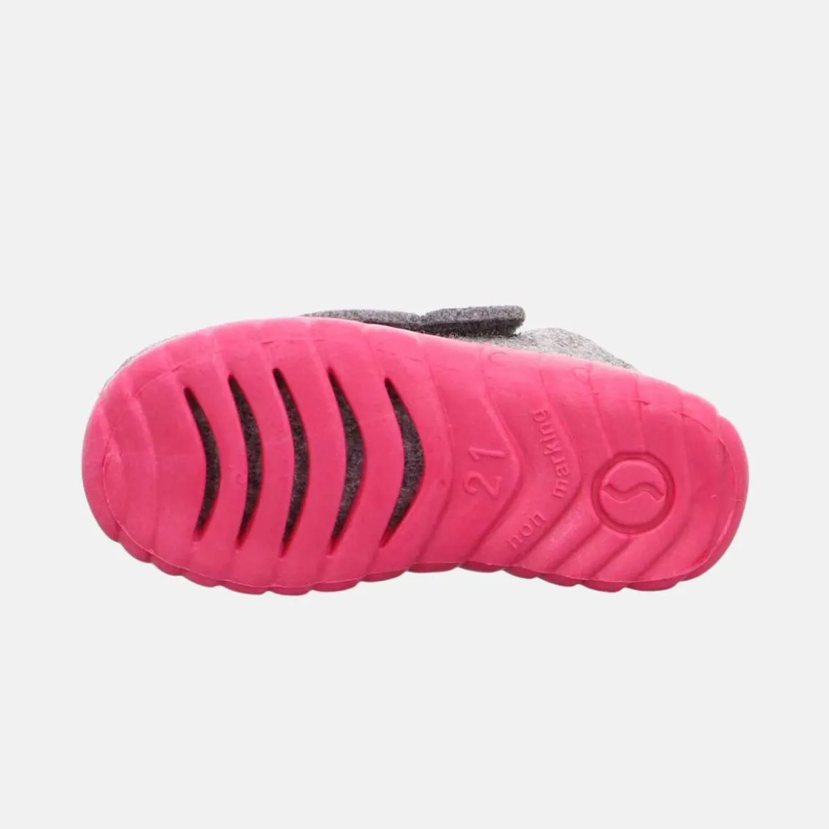 Den søte tøffelen fra Superfit er laget for de første store skrittene til små låve. Den varme filten sørger for en supermyk følelse. De fargerike, ikke-merkende sålene er laget for alle innendørs eventyr.