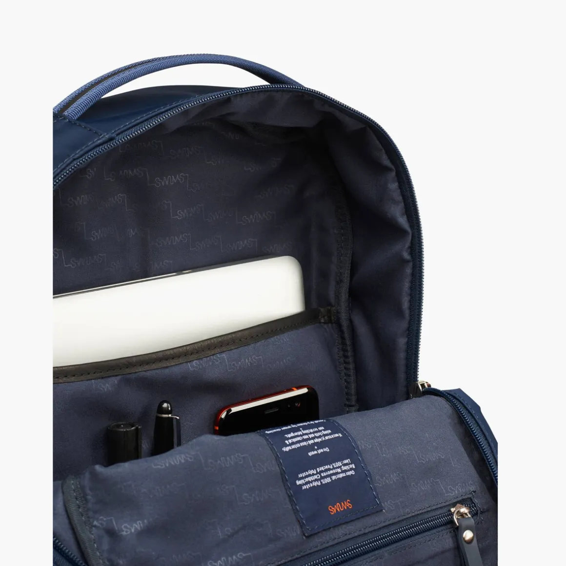 Vanntett ryggsekk fra SWIMS. Den har plass til det nødvendige på turer til og fra kontoret, treningsstudioet eller neste store ferietur. Allsidige oppbevaringsalternativer inkluderer et dedikert laptoprom pluss et praktisk hylster for en paraply eller vannflaske. Justerbare stropper og solid konstruksjon avrunder ting for komfortabel bruk på farten.