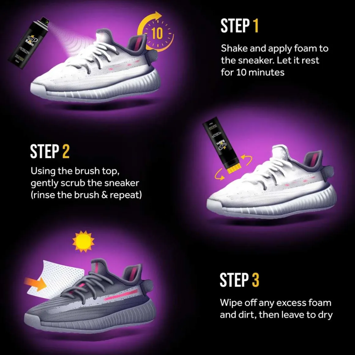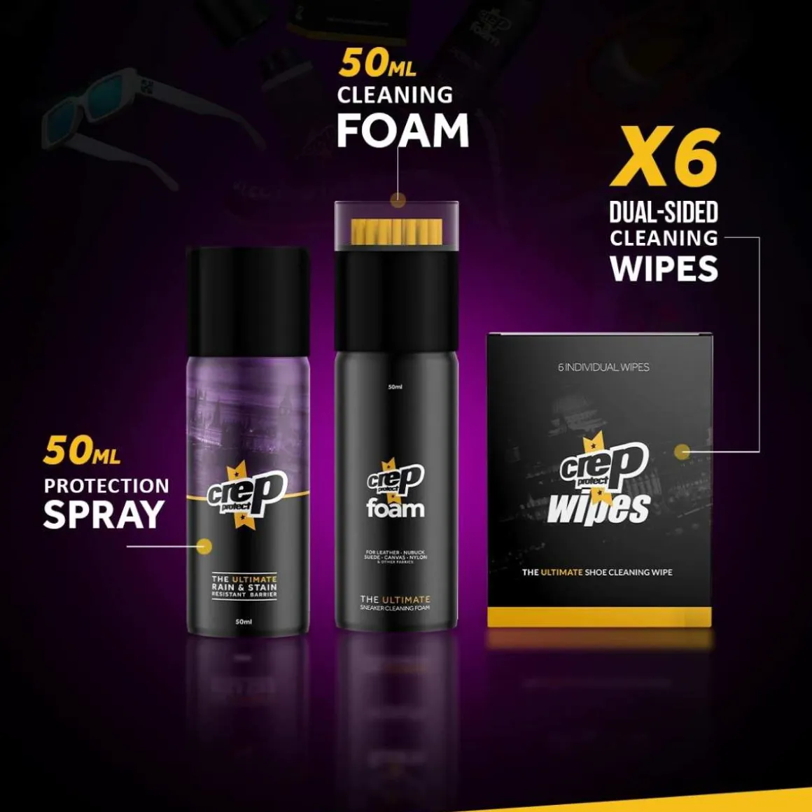 - Complete Package: Foam, Spray, 6 Dual-Sided Wipes