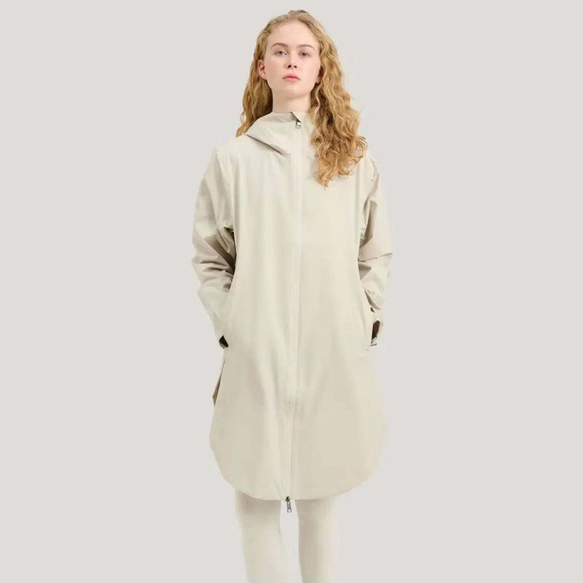 Way Poncho Parka fra Tretorn er en vanntett regnparka for kvinner, designet som et fleksibelt skallplagg for bruk fra vår til høst. Det poncho-inspirerte snittet gir en luftig silhuett med et rent uttrykk, mens konstruksjonen beskytter mot regn og vind. Parkaen er laget av resirkulert materiale og har et vanntett stoff med teipede sømmer og en vindtett og pustende konstruksjon. Diskrete lommer i sidesømmene med skjulte glidelåser, sammen med en innerlomme med glidelås, gir praktisk oppbevaring uten å forstyrre formen eller passformen.