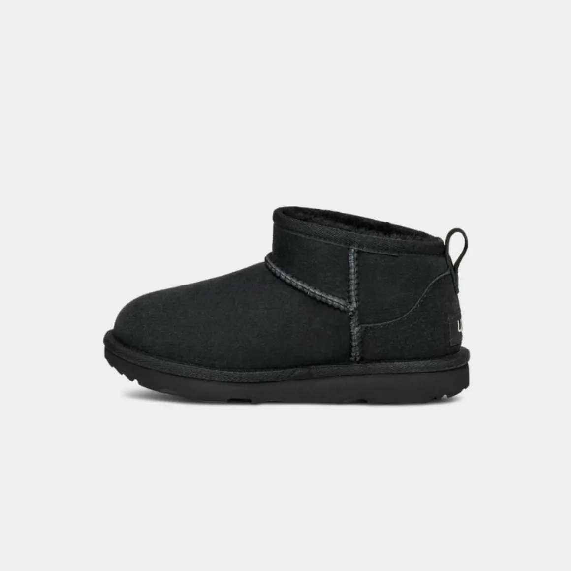 UGG sin ikoniske vintersko til barn. Classic Ultra Mini har en lavere skafthøyde for å legge til enkel av-på og forbedret allsidighet. Signaturfôr av saueskinn, en ultramyk UGGplush™-innersåle og en fleksibel, ultralett såle laget for lek hele dagen.