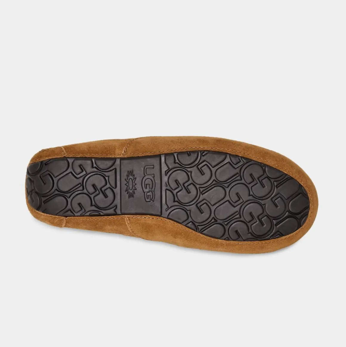 UGG Ascot. Ascot tøffelen har utseende til en loafer og mykheten til tøffelen. Den har en gummisåle som kan gå både innendørs og utendørs, slik at du kan ta den på deg om morgenen hjemme, helgeplaner eller uformelle kontordager.