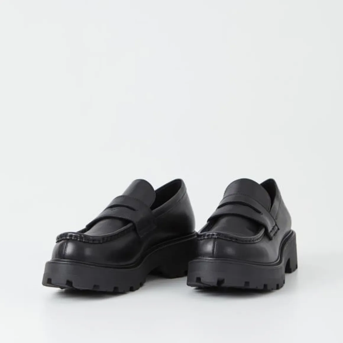 Denne Cosmo 2.0 loaferen fra Vagabond er full av karakter, og et chunky tillegg til skosamlingen. Den helt svarte overdelen er laget av glatt skinnsett på en 45 mm solid såle for en subtil løfting. Funksjonene inkluderer klassiske, synlige sømmer og konturerte øre-stropper over øvre del.