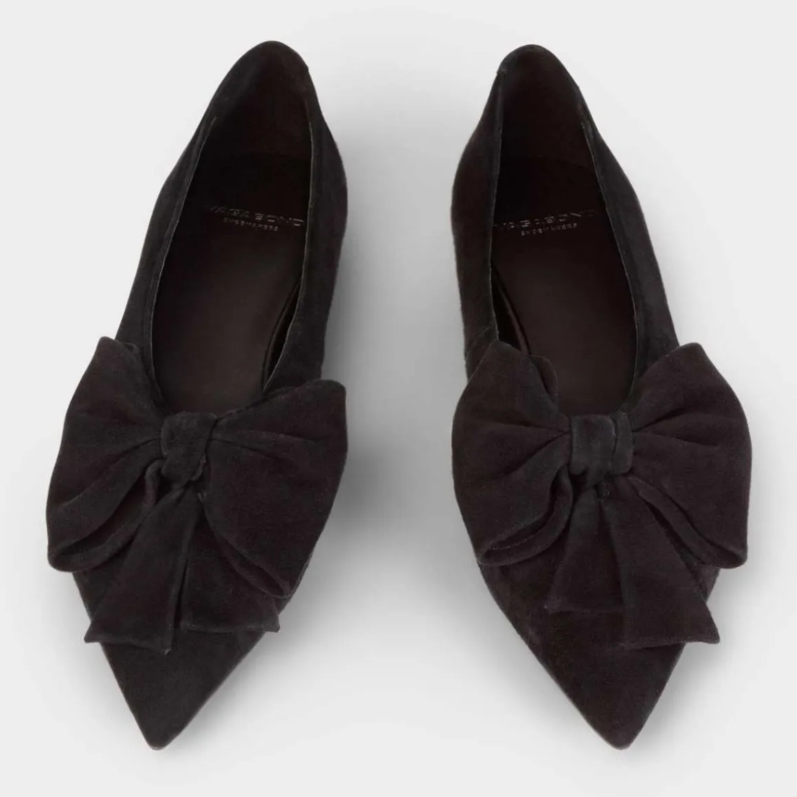 Med en markant sløyfe og spiss tåform presenterer Hermine et delikat, men iøynefallende design. Den klassiske stilen er laget av svart semsket skinn, har skinnfôr med 10 mm hæler.