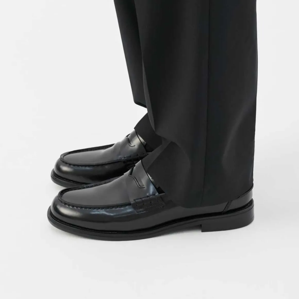 Vi omtaler vanligvis Steven som den perfekte loaferskoen. Penny-designet er laget av polert svart skinn og har en mokkasinsøm, skinnfôr og innersåle i skinn. Yttersålen har en tynn gummipute – noe som gir godt grep.