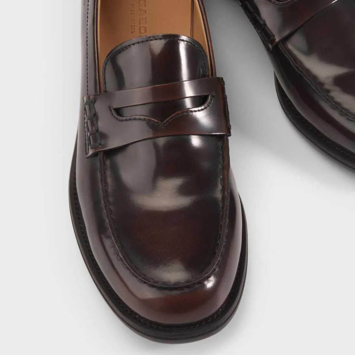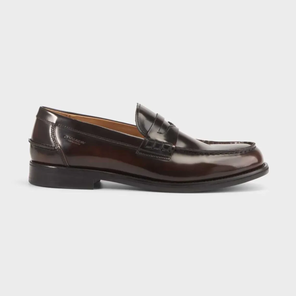 Vi omtaler vanligvis Steven som den perfekte loaferskoen. Penny-designet er laget av polert brunt skinn og har en mokkasinsøm, skinnfôr og innersåle i skinn. Yttersålen har en tynn gummipute – noe som gir godt grep.