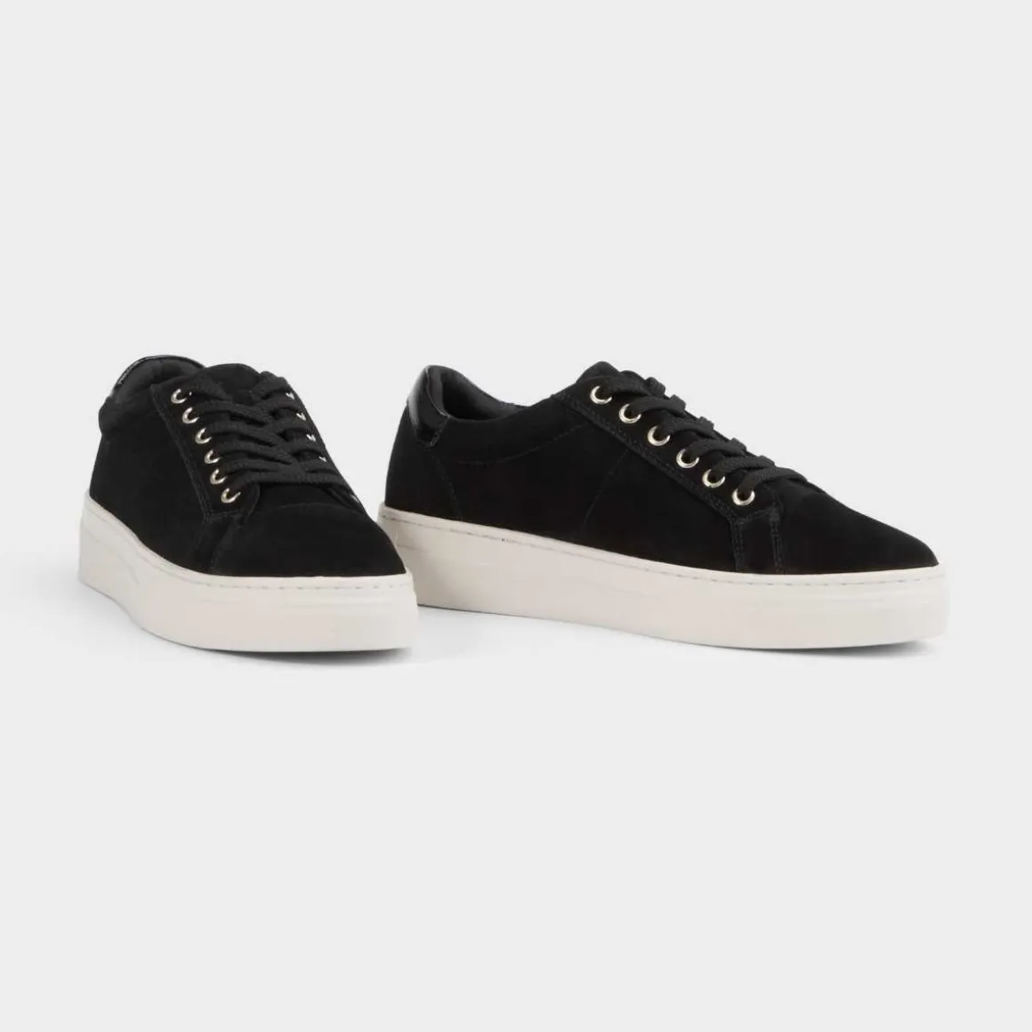 Zoe Platform fra Vagabond er chunky sneakers til hverdagsbruk. Modellen er laget i semsket sort skinn.