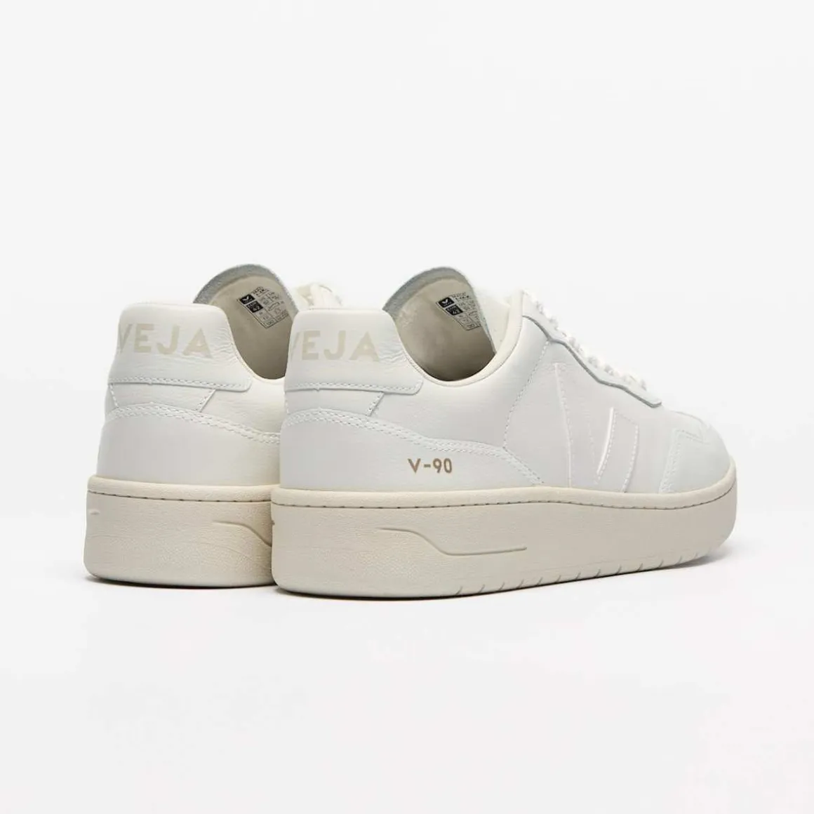 Veja V-90 til herre. V-90 har litt tykkere såle. O.T. (Organic Traced) lær kommer fra 100 % organisk sertifiserte gårder i Uruguay, et land kjent for sin dyreholdskultur og kvaliteten på læret. Det er det mykeste og fineste av våre lær som kommer fra storfe. Denne typen lær gjennomgår en mekanisk bankeprosess som gjør den fin og bøybar. Garvet i Brasil med mindre fargestoffer enn vårt konvensjonelle storfeskinn.