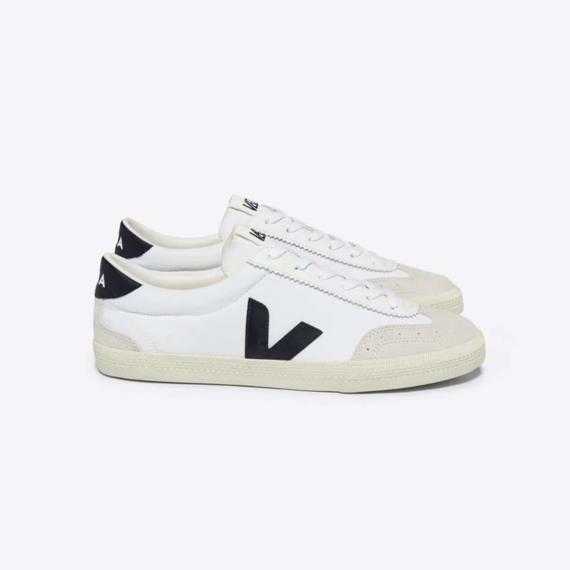 Veja Volley Canvas White/Black Pierre er et par sko fra Veja. Disse skoene er en del av Vejas Volley-serie og er laget av hvit canvas med detaljer i fargen Pierre.