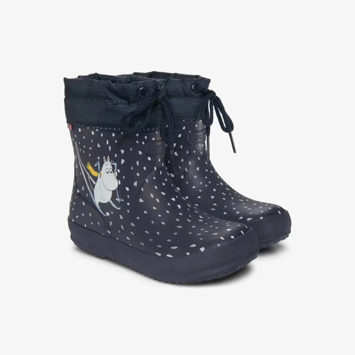 Alv Indie Warm Moomin er en klassisk, funksjonell og morsom gummistøvel for små barn som elsker å leke i regnet. Nå kan de ta med favorittkarakterene sine! Lett å ta på og behagelig å bruke. Alv Indie Warm Moomin er perfekt for kalde, våte dager! Alv Indie Warm Moomin er en lav, isolert gummistøvel med temperaturregulerende såler og varmt ullfôr som holder varmen inne! Slaps og regn holder seg ute med kilestropp og lisser! Disse støvlene har en standard passform sist og er konstruert av naturgummi, som er elastisk, holdbar og vanntett. Yttersålen etterlater ikke merker, og innersålen kan tas ut og legges til tørk. Disse støvlene er PVC-frie og veganske!