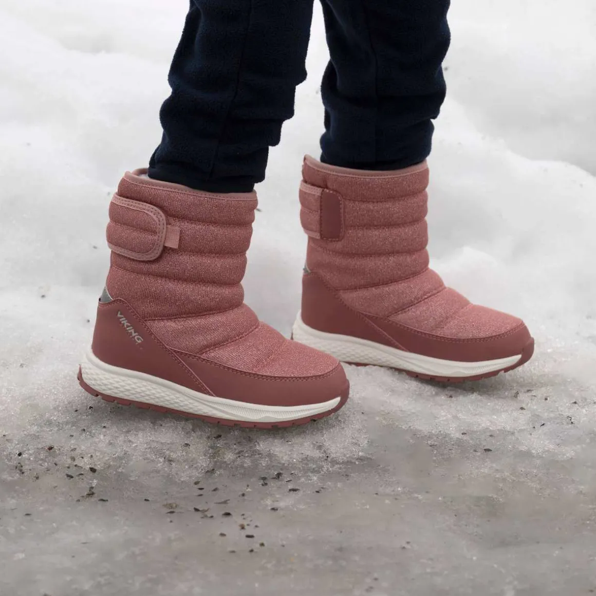 La barnet være godt utstyrt for alle eventyr i hverdagen med en støvel fra Viking som tilbyr både stil og komfort. Den høye, glitrende overdelen har et praktisk design som gjør skoen lett å ta av og på, mens borrelåsfestet bak holder skoen på plass. Vikings Watershield-membran holder foten behagelig tørr i vått vær, mens et varmt, isolerende lag holder kulden ute. En lett EVA-mellomsåle reduserer belastningen ved hvert skritt, og en yttersåle i gummi gir godt grep.